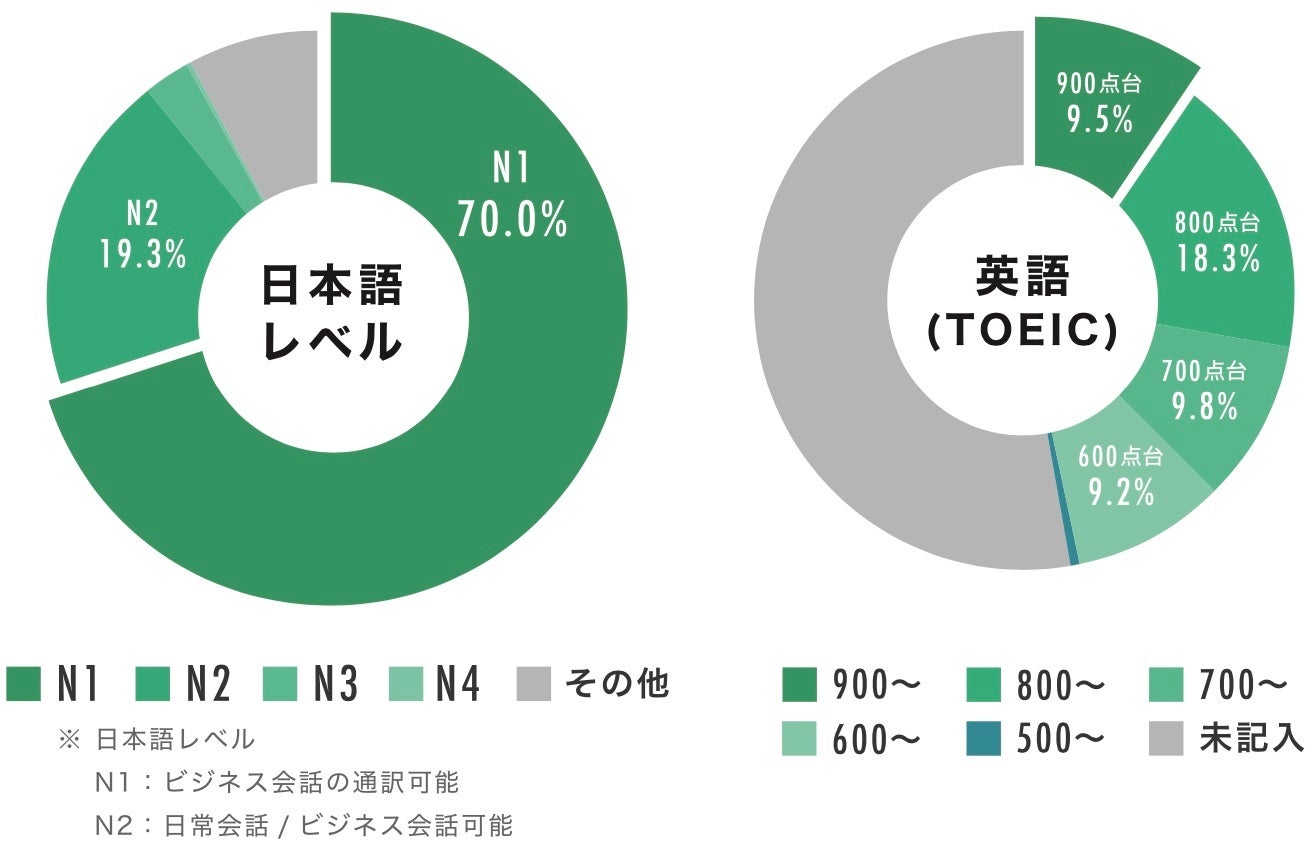 - 登録者の90%は、ビジネスレベルの日本語力を保持!韓国人材はハイスペック!?