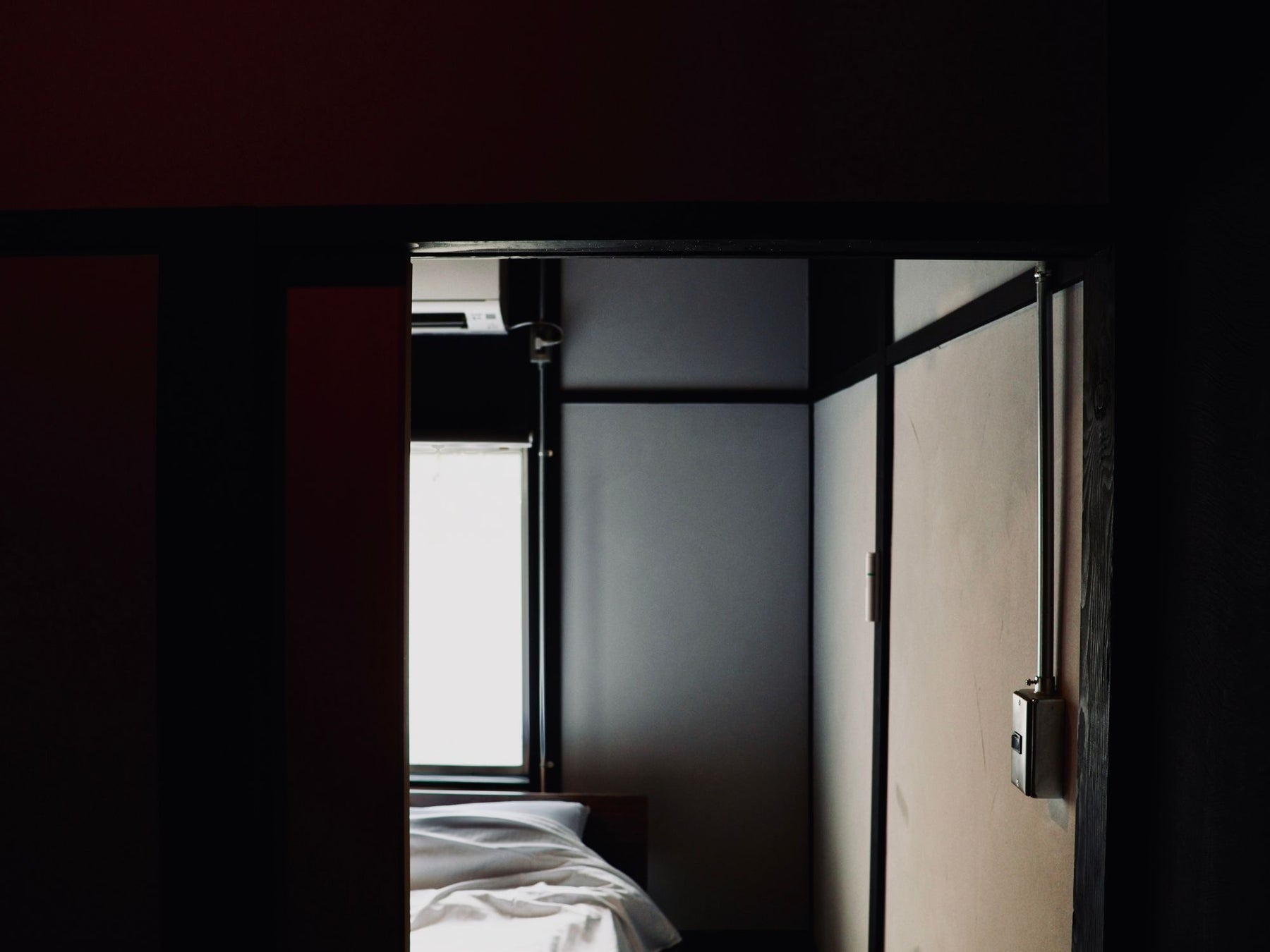 √2 Houseは京都駅から徒歩10分の好立地。扉を開けると、外観からはイメージができない非日常的な内装の空間となっている。