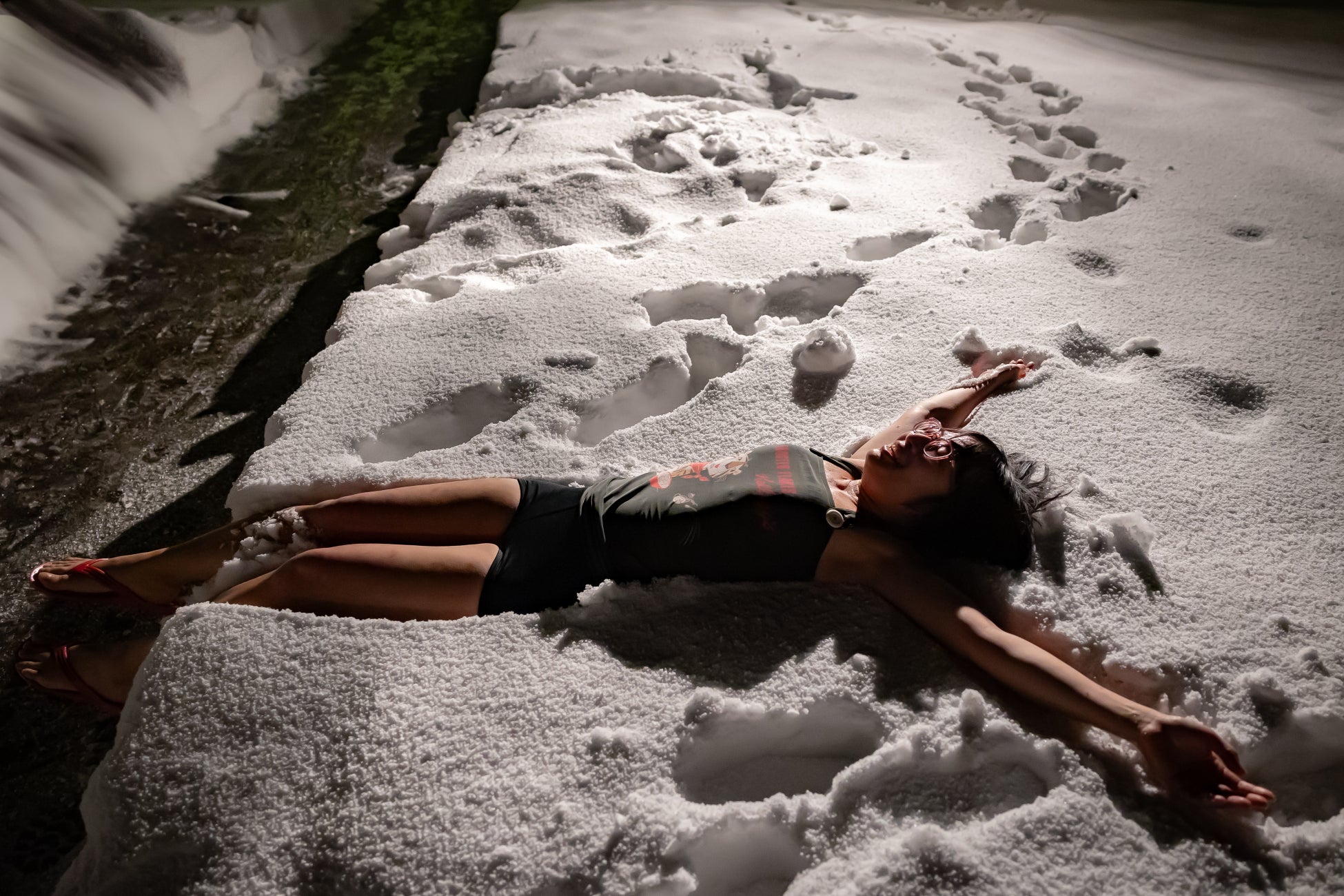 予定数を上回る応募者から10名が当日参加。顔ぶれは、関東2名、関西・近県7名など鳥取県外からが大半で、米子空港と米子駅までの送迎も実施しました。無事到着したメンバーは諸注意の後、持参のウェアに着替えてサウナ→軽食→サウナの無限ループに突入。3種類のサウナがフル稼働し、常設サウナではスタッフによるアウフグース、屋外テントサウナ内は植物の香りに包まれて。雪の中の水風呂とドラム缶からのかけ湯、外気浴は焚火を囲んで過ごしたり屋内で薪ストーブに当たりながら休む人も。泊りがけなのでナイトサウナやモーニングサウナも、ほとんどの人が念願の雪ダイブを満喫されました。