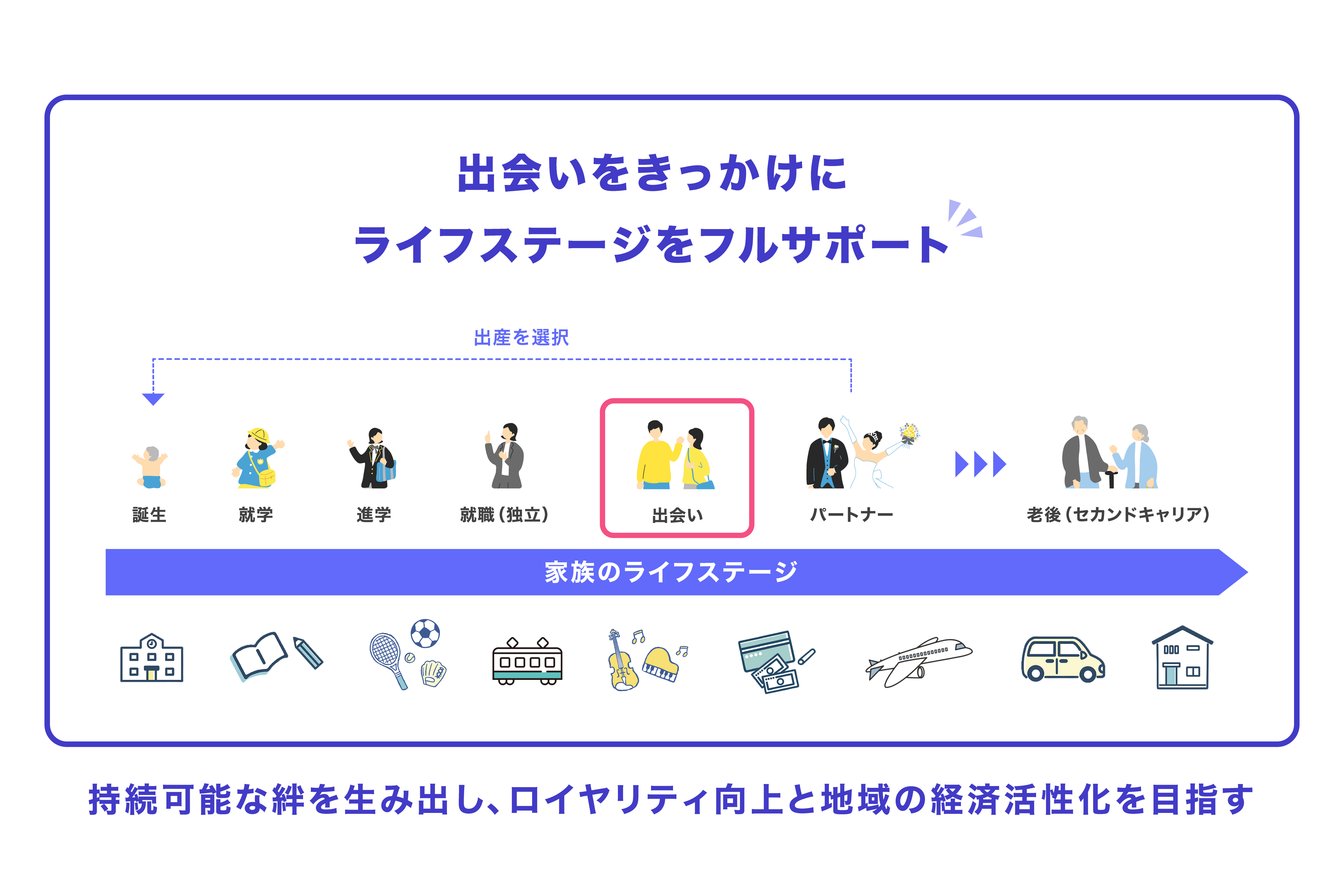 企業の人的資本経営を支える福利厚生制度の共創を通して、仕事と家庭を支え合えるパートナーとの出会いによって、ライフイベントの選択肢の幅を広げ、働く人の人生のQOL向上を目指して参ります。