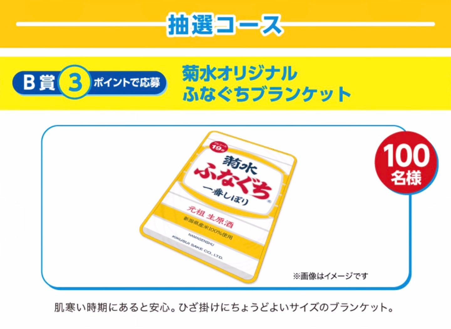 B賞 3ポイントで応募 100名様 「菊水オリジナル ふなぐちブランケット」