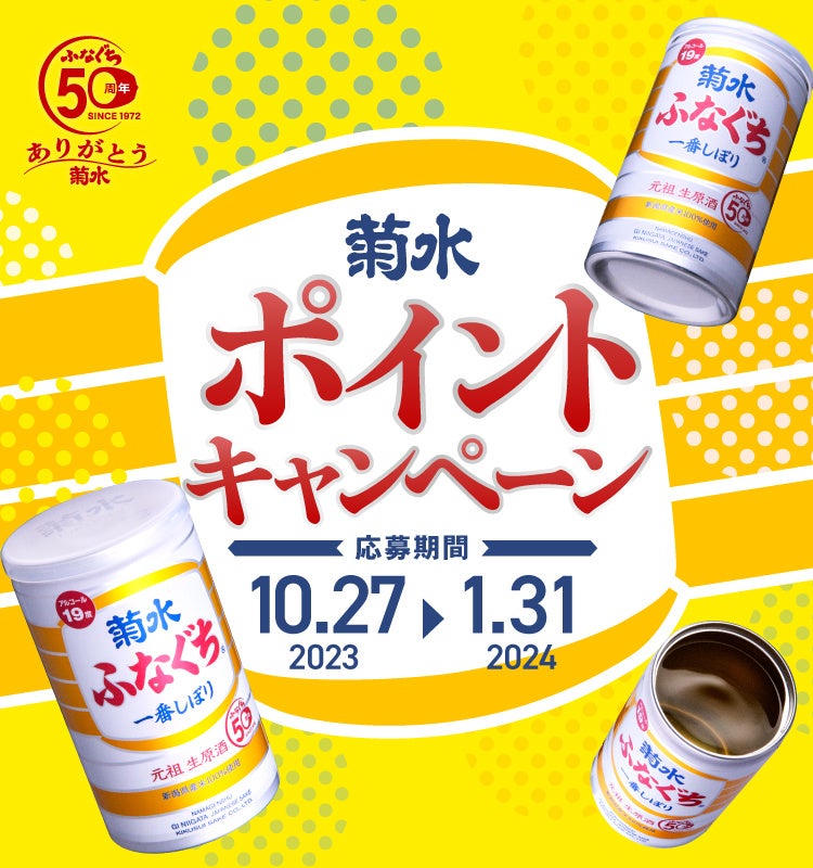 菊水酒造株式会社(本社:新潟県新発田市、代表取締役:髙澤大介)は、「菊水ふなぐち」発売50周年の感謝企画として「菊水ポイントキャンペーン」の第四弾を2023年10月27日(金)より実施いたします。