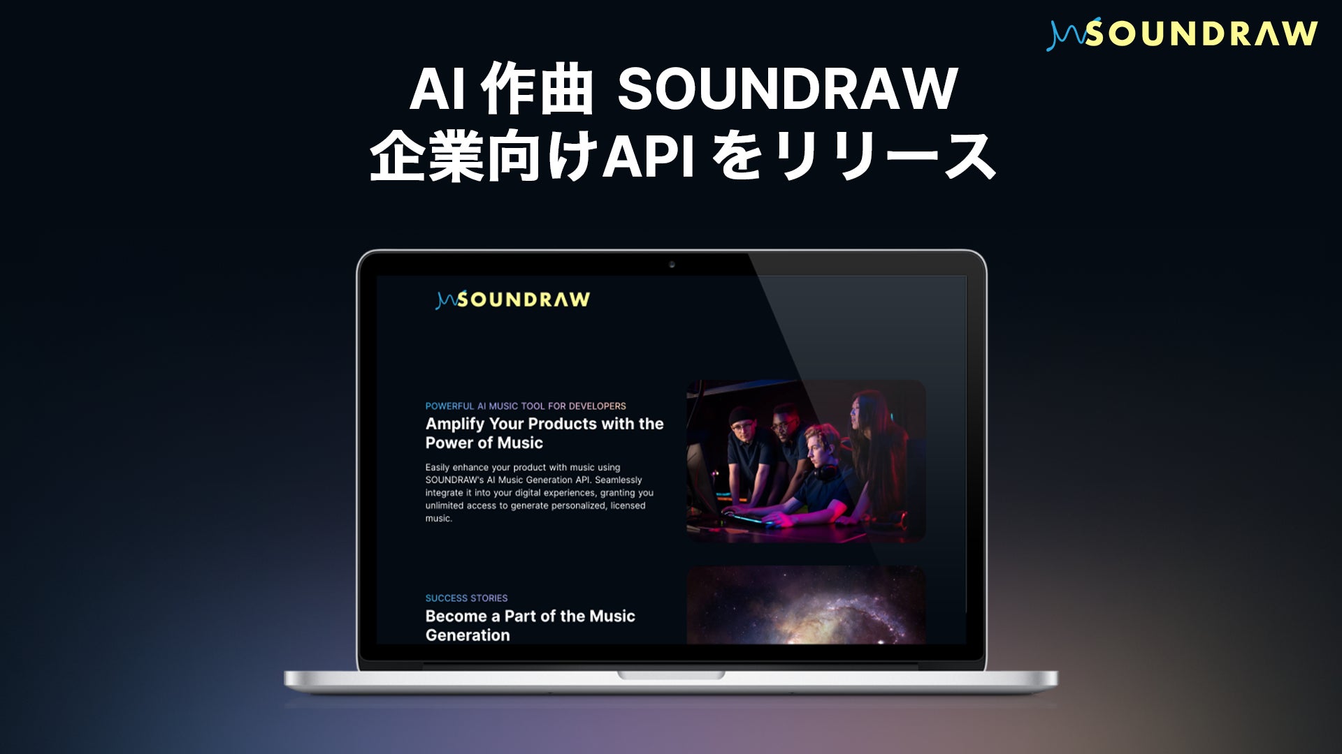 AI作曲サービスを提供するSOUNDRAW株式会社(所在地:東京都港区、代表取締役社長:楠太吾)は、2023年9月8日に企業向けの「SOUNDRAW API」をリリースしました。