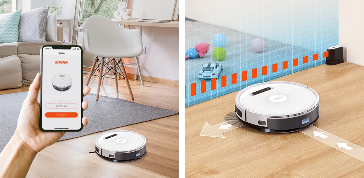 ILIFE HOMEに対応。アプリとの連携による機能面での充実が図られています。また別売りのエレクトロウォール(PX-E010)にも対応し、進入させたくないエリアの前におくことでロボット掃除機の進入を防ぎます。