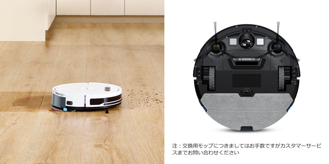 V3s Maxは吸引掃除と水拭きを同時に行うことが可能です。アプリを使うことで水量の調節も可能。容量アップしたウォータータンクにより約80㎡のお部屋を水拭きできます。