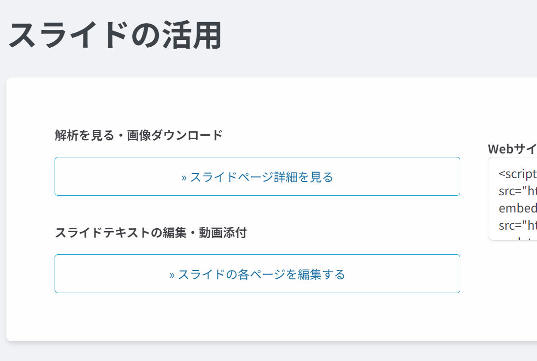 提供仕様 :公開スライドに動画を添付可能(1ページあたり15分以内・1GB以内)