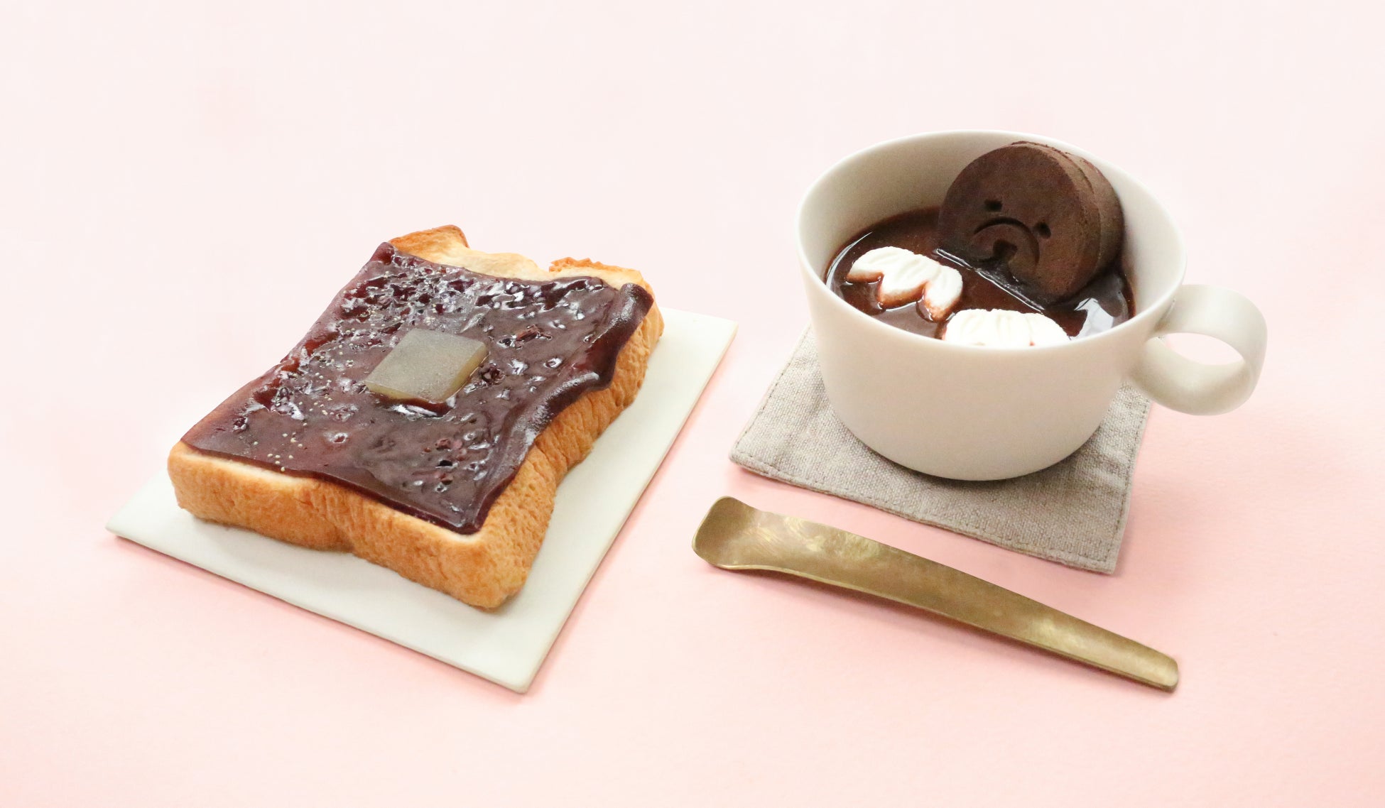100年以上前の木型をモチーフにした、ホットココアになる和菓子や、パンにのせて焼く「スライスようかん」のカカオ味など、全7種類のバレンタインの和菓子が登場します。