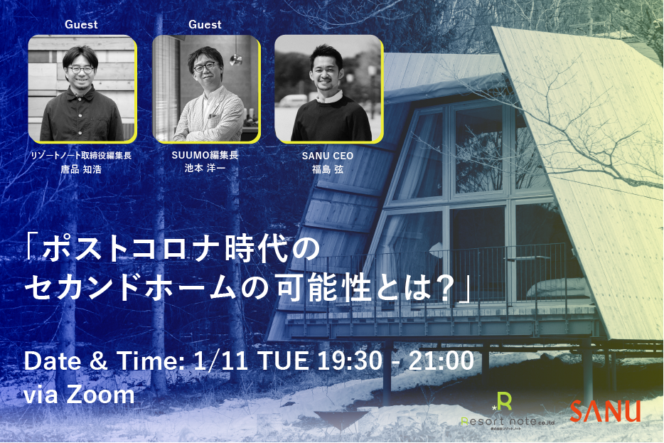 「ポストコロナ時代のセカンドホームの可能性とは?」1月11日(火)ウェビナー開催!CEO福島弦が登壇