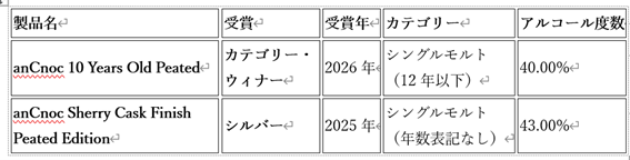 『anCnoc Sherry Cask Finish Peated Edition』も2年連続国際的評価を獲得