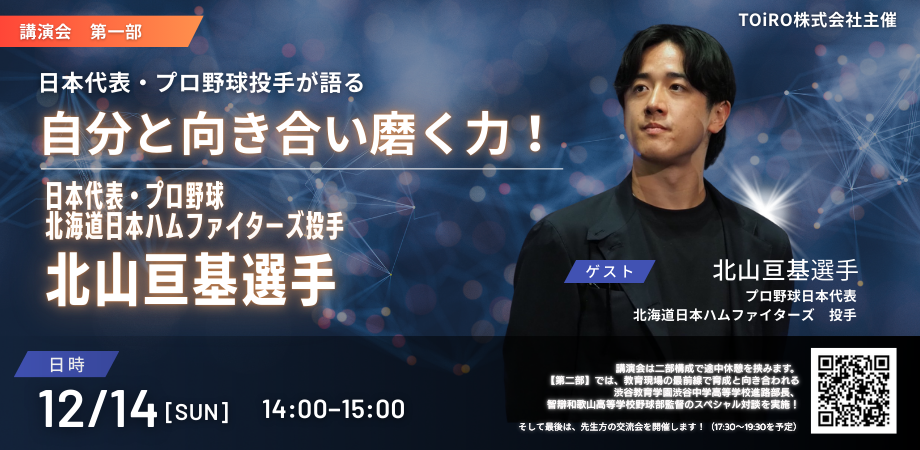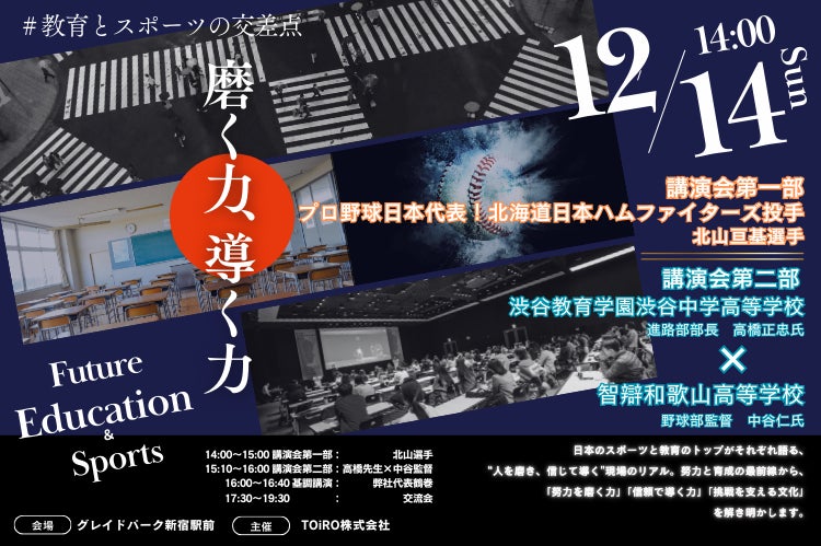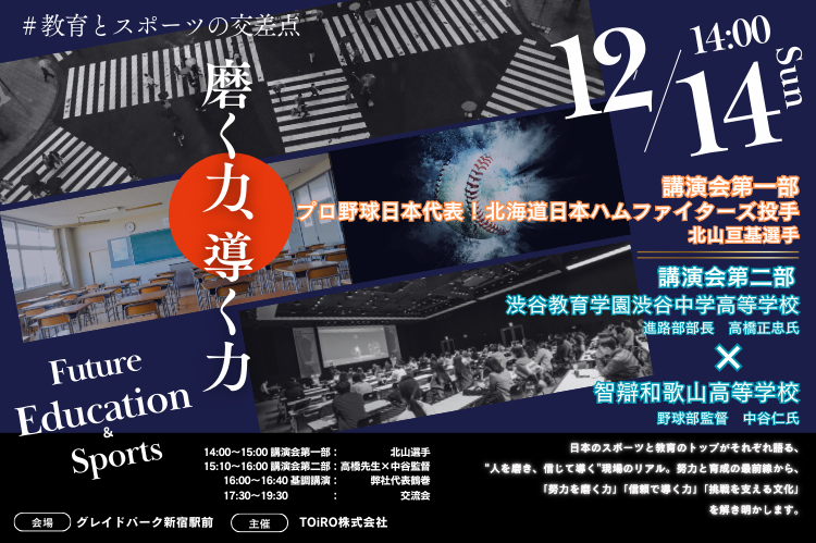 TOiRO株式会社(本社:東京都千代田区、代表取締役:鶴巻翔平)は、教育・スポーツ・人材育成の現場をつなぐ特別イベント「磨く力、導く力」を、2025年12月14日(日)に東京都内で開催いたします。