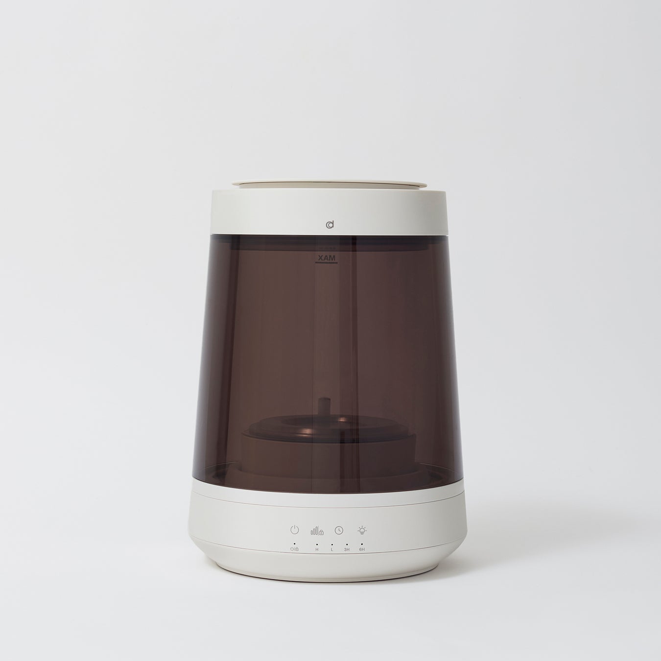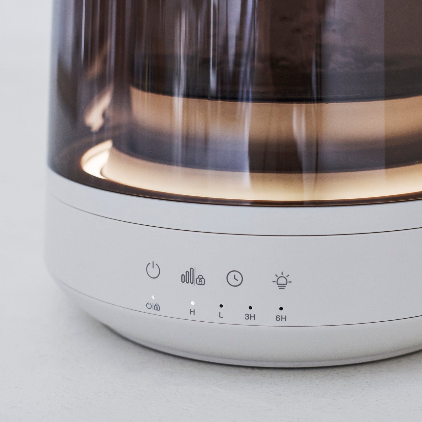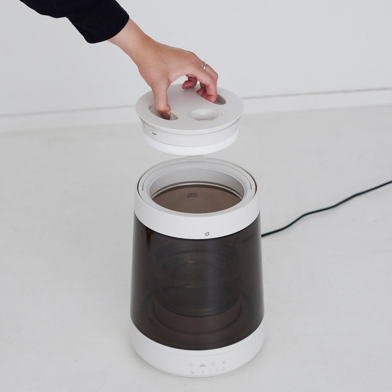 沸騰した水から生まれるピュアなスチームが、空気をやさしく潤し、4段階の照明モードが水の動きと呼応するインテリアのように美しい新感覚のスチーム加湿器