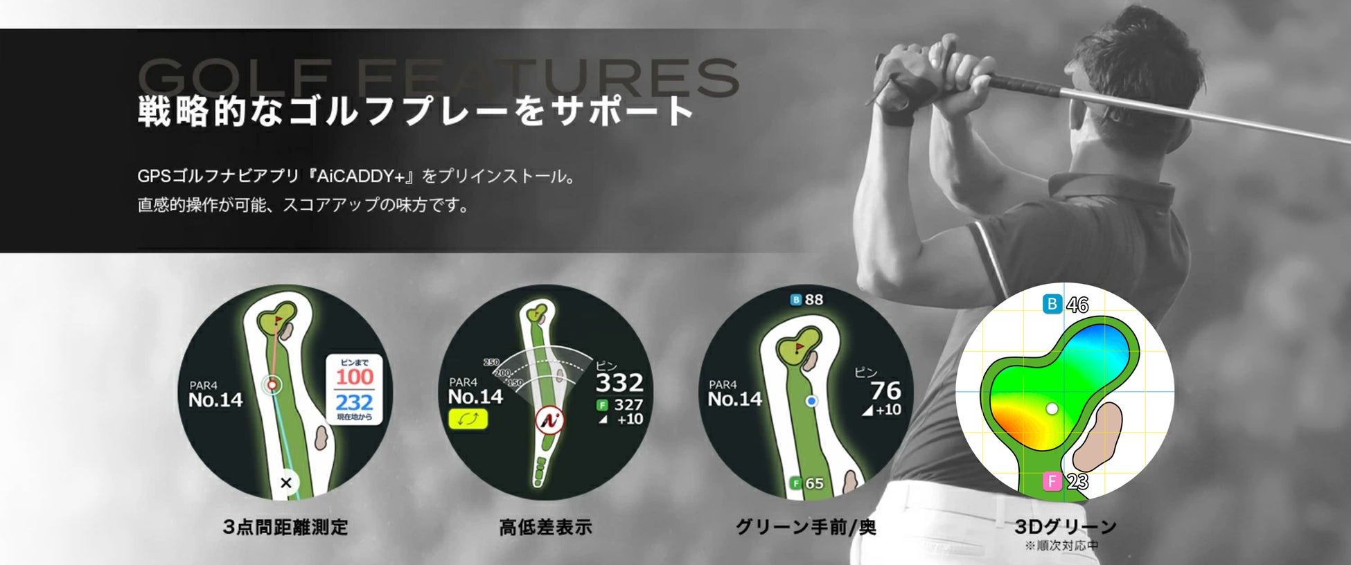 ・ゴルフアプリ「AiCADDY+」プリインストール(利用料金無料)