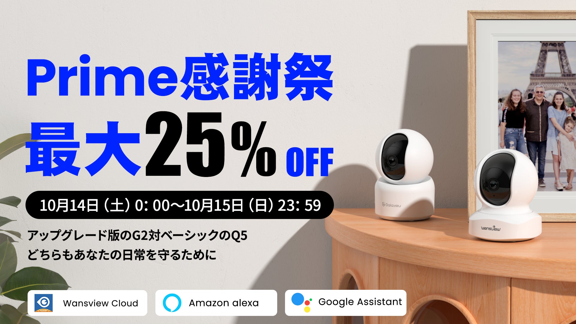 今回のPrime感謝祭に、WansviewシリーズとGalayouシリーズの商品全体がキャンペンを参加いたします。