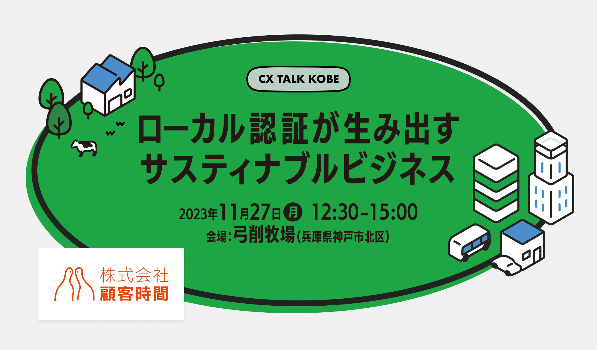 2023年11月27日(月)開催の「CX TALK KOBE -ローカル認証が生み出すサスティナブルビジネス-」は、国内外で昨今注目されるローカル認証を通して、その実践企業の事例などからサスティナブルビジネスを生み出す仕組みをみなさんと一緒に学び、共に考えを深めるイベントです。