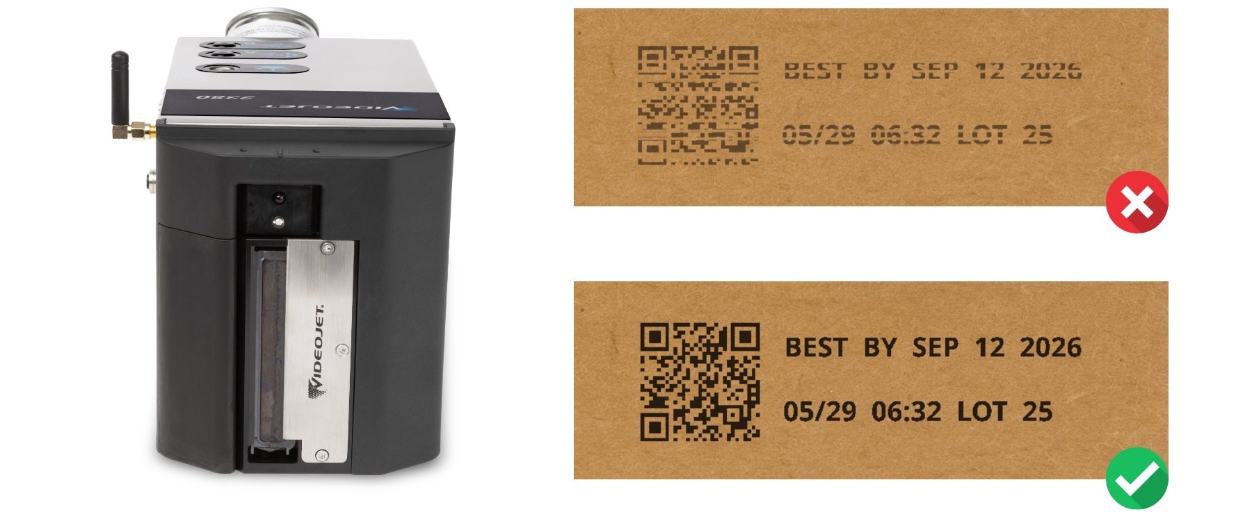 Videojet 2380 には2つのクリーニング機能が備わっており、サプライチェーン内でのトラブルを引き起こしかねない「印字不良」を抑制します。