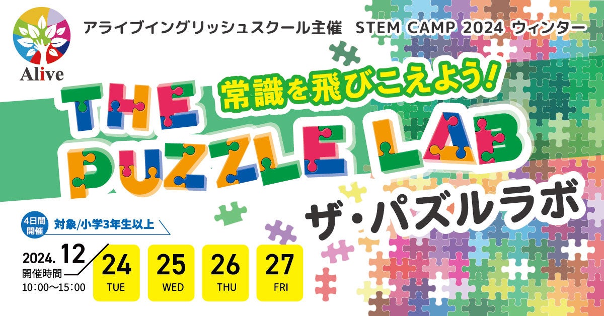 株式会社アライブは、2024年12月24日から4日間、アライブ STEMキャンプ 2024 ウィンターにて「ザ・パズルラボ」を開催いたします。このイベントでは、小学生が英語を使いながら多様な形式のパズルを楽しみ、理工系の要素に触れる機会を提供いたします。