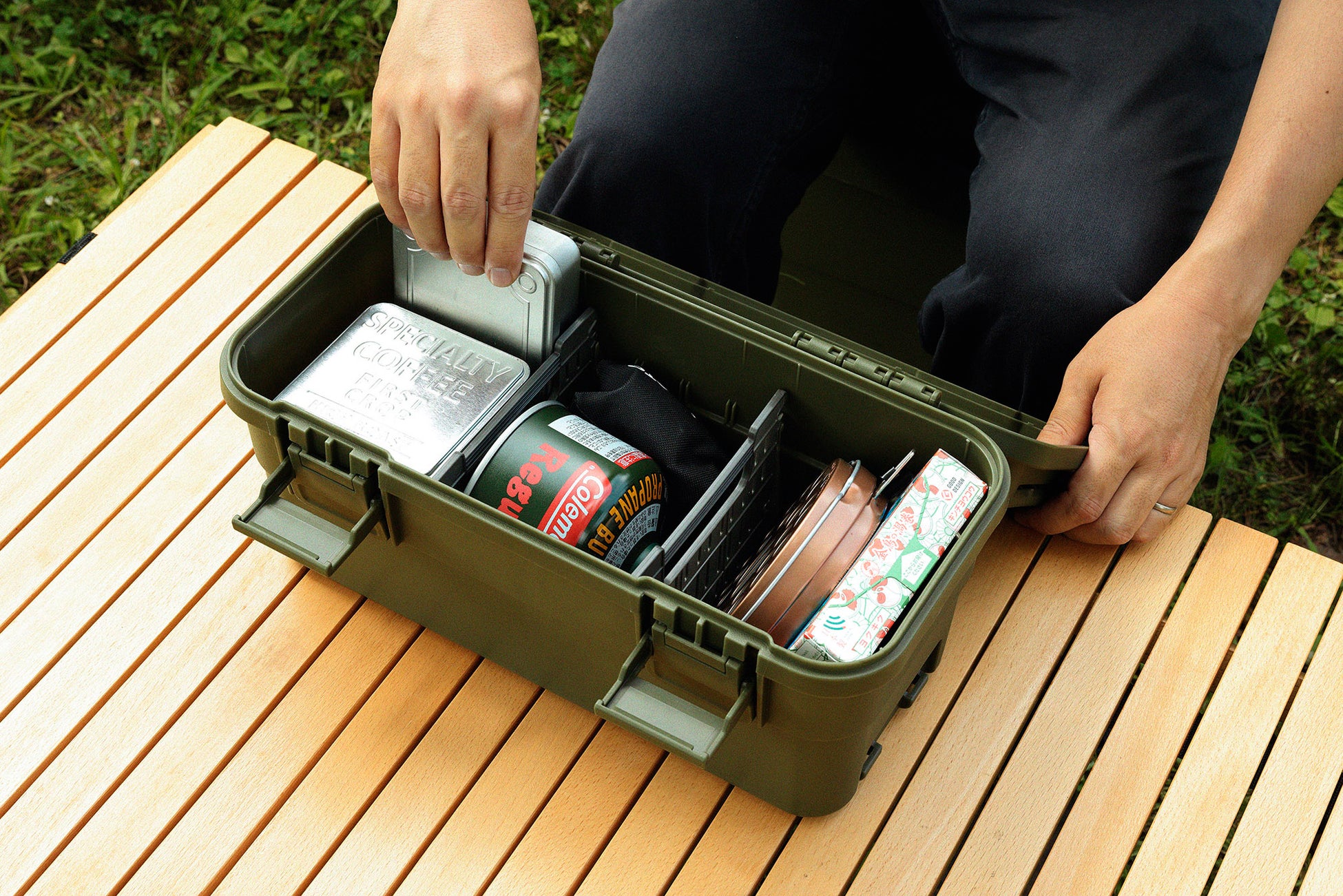 シンプル・無骨なデザインで使い勝手が良いとキャンパーに人気のキャンプ収納「トランクカーゴ 」シリーズ。テーブルや椅子など収納ボックスの枠を超えた使い方ができ、多くのキャンパーから支持をされています。今回、小型の道具の収納に最適なツールを収納できトランクカーゴとの互換性も兼ね備えた小型のツールコンテナボックス「スタックカーゴ」と容器内の整理整頓ができる専用の仕切板とトレイのオプションパーツを発売します。