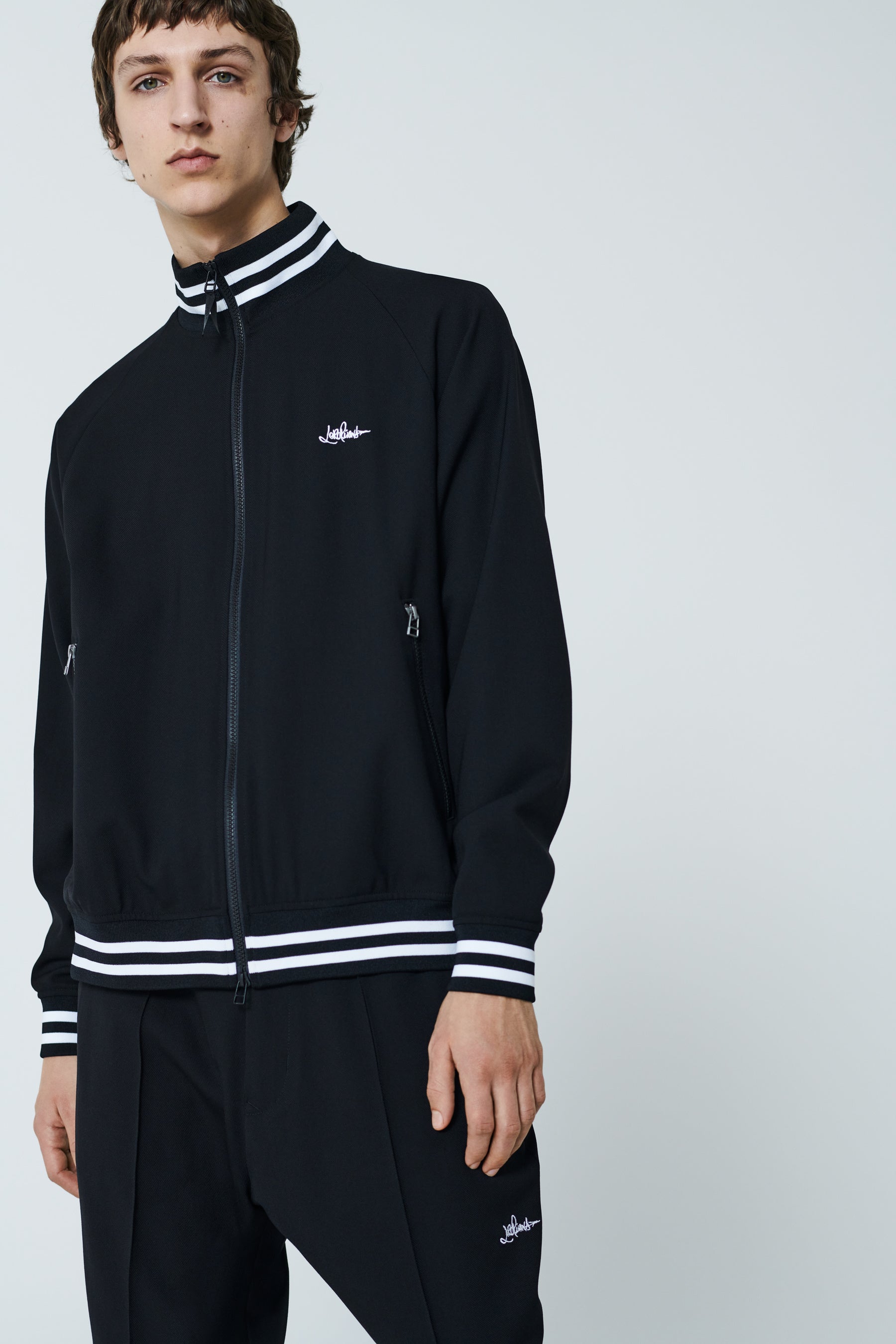 また、1970年代から90年代にかけて、ロロ・ピアーナのセールススタッフが生地サンプルを運ぶために使用していたトランクケースのキャンバス地に描かれていたストライプからインスピレーションを得たマルチカラーのストライプ柄は、藤原氏の芸術的道程へのオマージュとしていくつかのアイテムで用いられています。通常はテーラードスーツに使用される上質なウール素材のリラックスしたトラックスーツ、ロロ・ピアーナのロゴをグラフィティ調にマキシサイズでフロントに配したコットンジャージーパーカ、LPレコードが入るほど大きなストライプのトートバッグなどのアイテムも揃います。