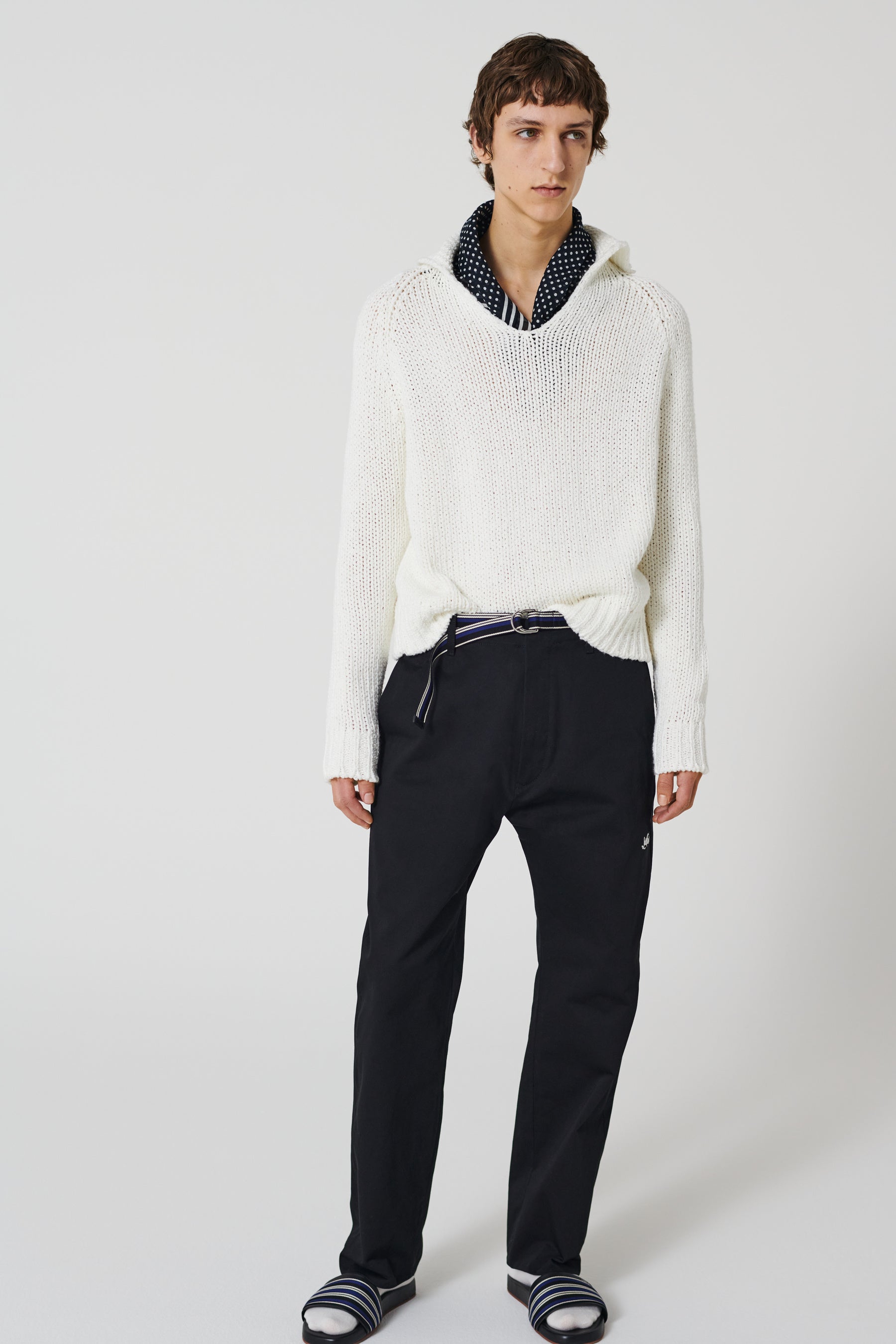 Loro Piana featuring Hiroshi Fujiwara コレクション第2弾は、ダイナミックなウェアと機能的なアクセサリーで構成されています。白、黒、ネイビーブルーは藤原氏の特徴的なカラーパレットであり、上質で心地よい素材とディテールへのこだわりはまさにロロ・ピアーナそのもの。たとえば、夏にぴったりなシルクとコットンの混紡素材をサステイナブルに進化させたソフトなセーターは、モダンでオリジナルなブルトン・ストライプが上品かつスポーティな印象を与えています。