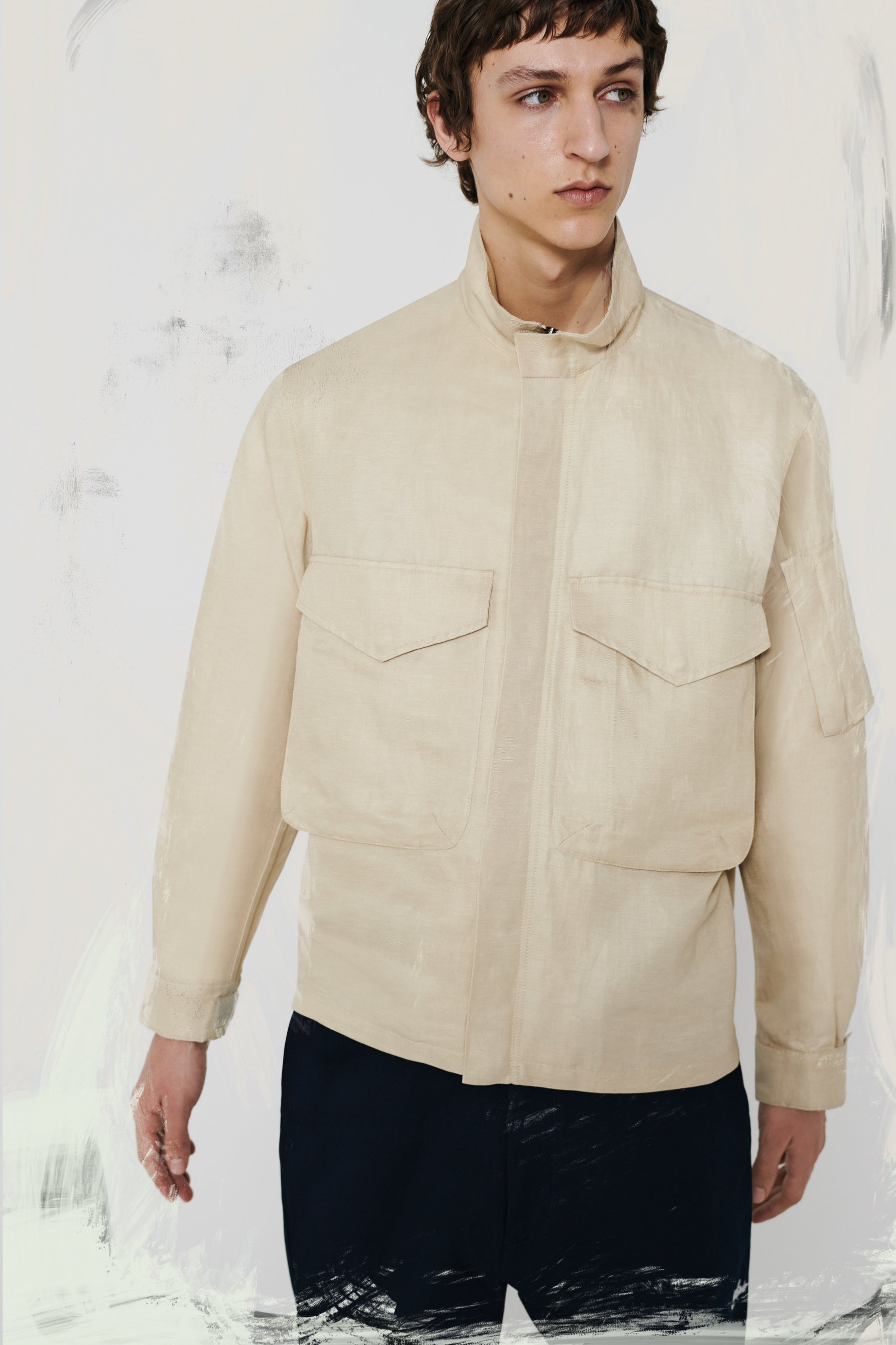 コレクションでは、カシミヤシルクの水玉柄大判スカーフや、アーティスト・今井麗氏により描かれたロロ・ピアーナのシンボルである動物、ビキューナのプリントが施されたコットン T シャツなども展開されます。オーバーサイズのトレンチコートは、メゾンのアイコンであるトラベラー・ジャケットの襟に折り込まれたフードのディテール、ウインド・マイクロファイバーにストームシステム®を採用した革新的な組み合わせに見られるロロ・ピアーナの特徴と、藤原氏のすっきりとしたミニマリズムが融合したアイテムです。