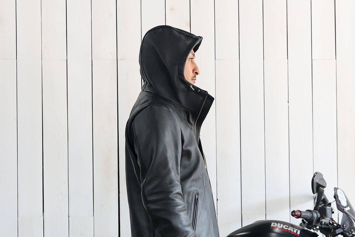 今回プロジェクトを実施するのは、高級な雰囲気をそのままに高機能な機能性を搭載した防水レザーフードジャケットです。
