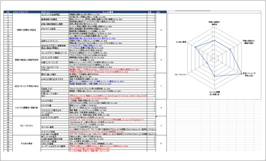 その後、重要プロンプトの自社・競合の引用状況を調査。続いて重要プロンプトのリストアップと主要AIサービス毎の自社・競合の引用状況の調査も行います。またLLMOで重要と考えられる項目をチェックし、弱点の可視化をします。