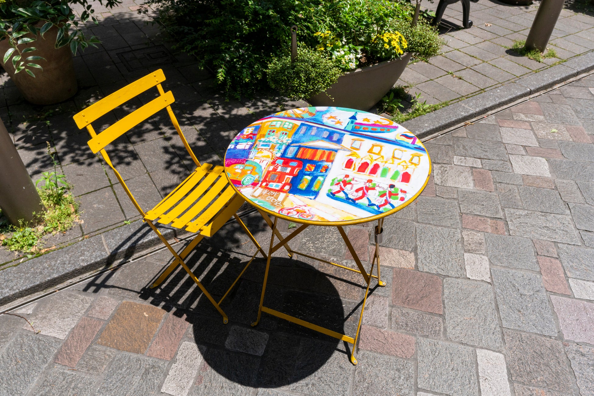 リガーレの公的空間活用事業の一つとして実施している「丸の内仲通りアーバンテラス」。アーバンリビングルーム(都市の居間)として丸の内仲通りの交通規制の時間帯に、テーブルや椅子の設置、キッチンカーの営業を行い、ワーカーや来街者の憩いの空間として、丸の内仲通りの日常の風景を創出しています。その中でも様々なアート事業が展開されている有楽町側のブロックにおいて、毎日設置されるテーブルの盤面にアート作品を施しました。丸の内仲通りに新しい彩りを与えることにより、そこを歩く人々がその風景を楽しんだり、会話のきっかけが生まれたり、心地の良い丸の内仲通りでくつろぎながら、まちに愛着を持ってもらい様々な方のウェルビーイングな過ごし方を実現することを目的としています。