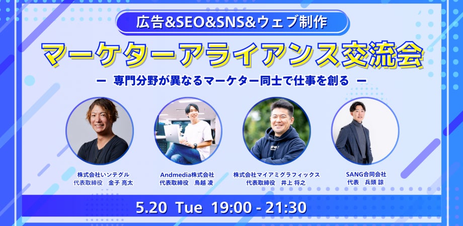 【5月20日(火)19:00~】広告&SEO&SNS&ウェブ制作のアライアンス交流会 ~ 専門分野が異なるマーケター同士で仕事を創る