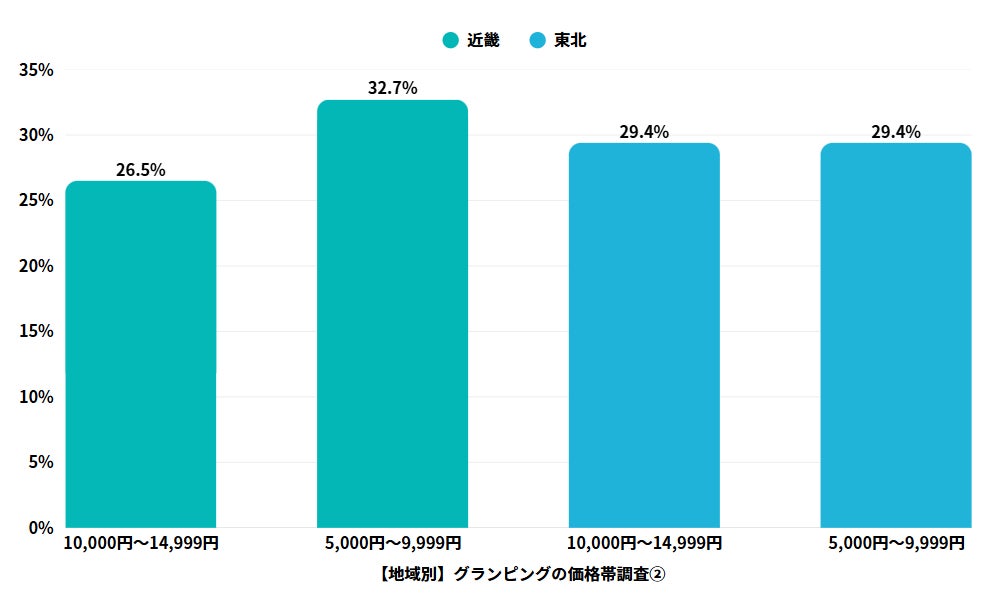 また、地方部ほど10,000円台前半に集中する傾向は、地域の所得水準だけでなく、グランピングに対する認知度や競合施設の価格設定も影響していると考えられます。