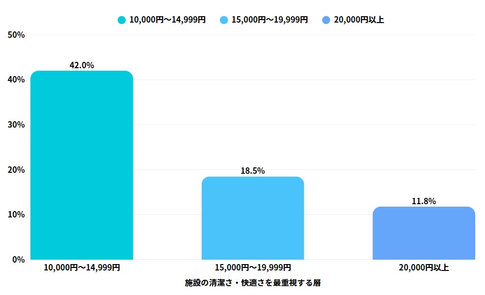 特に注目すべきは、「価格重視」層でも予算が二極化している点です。これは、グランピング市場が「とにかく安く」を求める層と「適正価格でのコストパフォーマンス」を求める層に分かれていることを示唆しています。