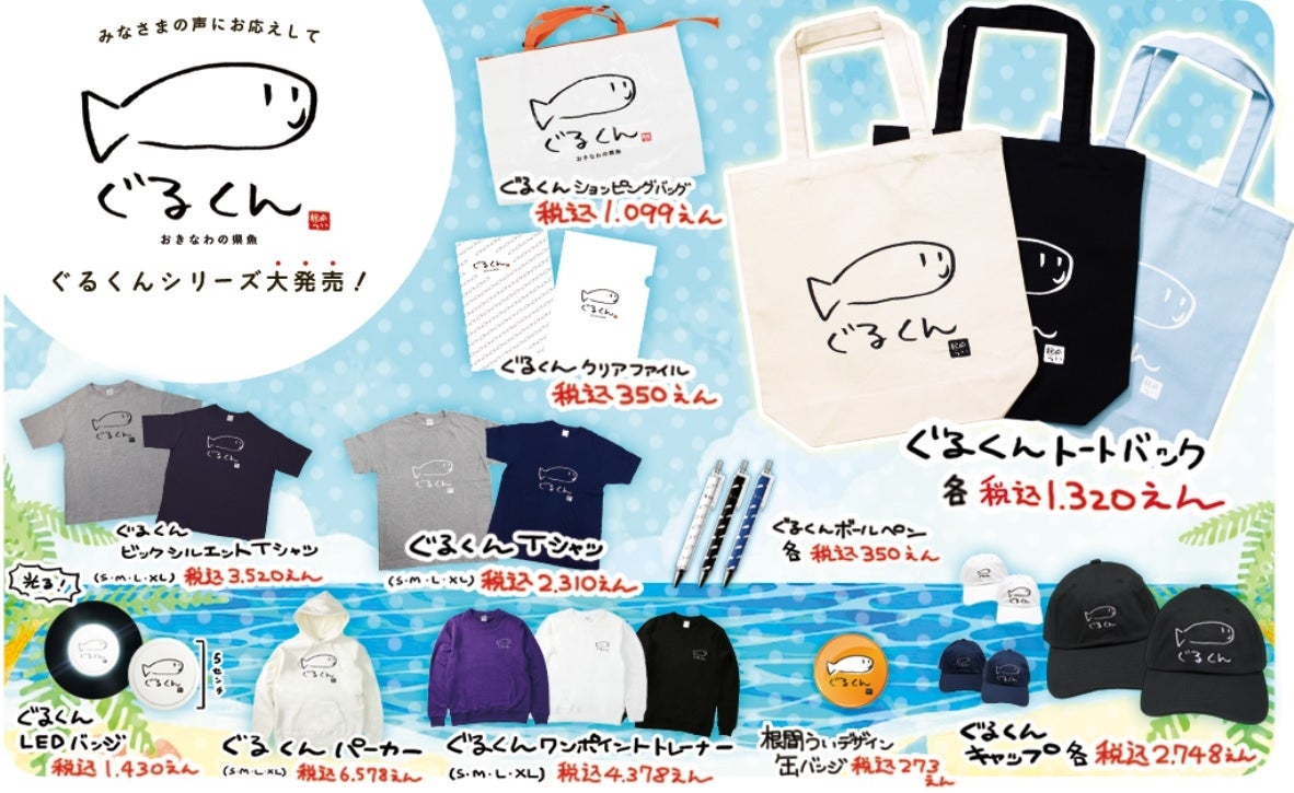 現在、沖縄随一のメインストリート・国際通りのお土産ショップを中心に絶賛人気爆発中!?で、沖縄新定番のお土産になりつつある“ぐるくんグッズシリーズ”のデザイン(らくがき)は根間ういが担当。