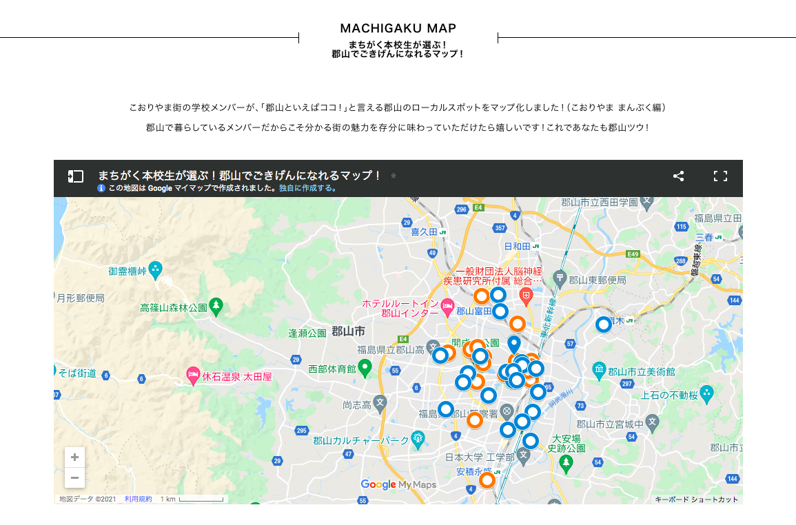 「こおりやま街の学校」を受講する市民のみなさんが「郡山と言えばココ!」とオススメするローカルスポットを集めたデジタルマップを制作しました。