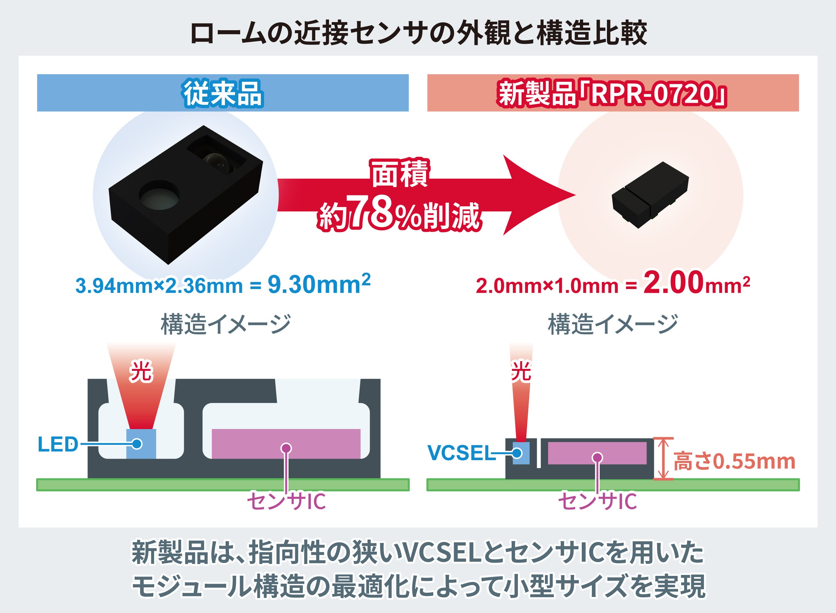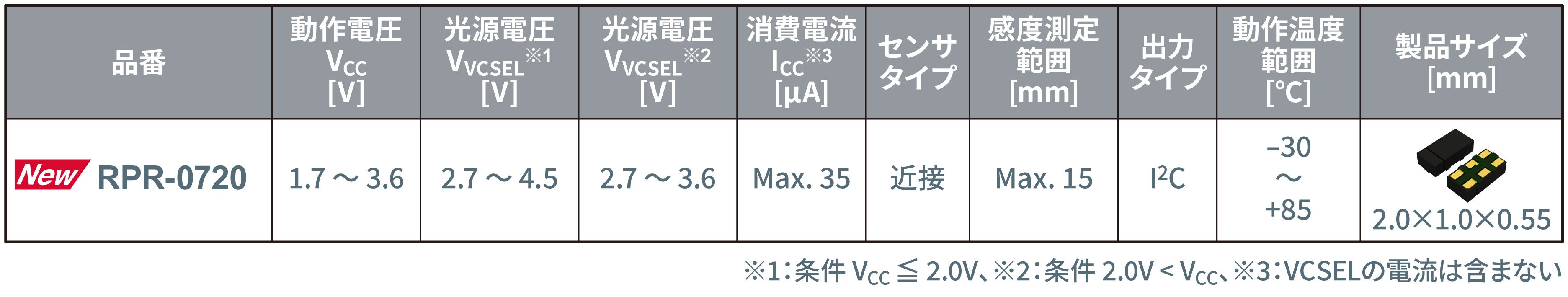 ワイヤレスイヤホンなど、ウェアラブル機器の小型化・電池容量増加に貢献する、VCSEL搭載の小型近接センサ「RPR-0720」を開発
