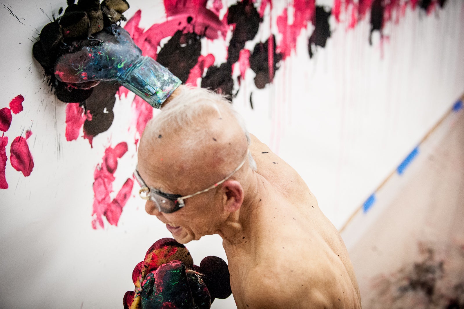 1932年東京都生まれ。東京藝術大学中退後、吉村益信らと「ネオ・ダダイズム・オルガナイザーズ」を 1960年に結成し、過激なパフォーマンスで注目を集める。現在はニューヨークを活動拠点とし、「ボクシング・ペインティング」をはじめとするエネルギッシュな作品で国内外から高い評価を受ける。