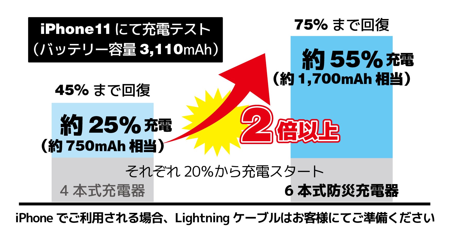 ③ 乾電池4本式の充電器と比較して、約2倍の充電性能。※当社調べ、以下参照。