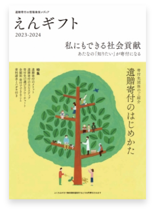 (4)遺贈寄付の情報発信:遺贈寄付の魅力を発信するガイドブック『えんギフト』の発行、情報発信メディアの運営