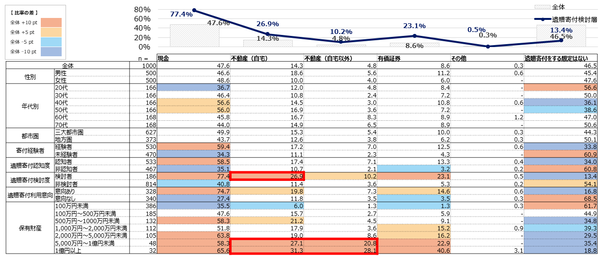 ・保有財産と遺贈寄付検討度の関係