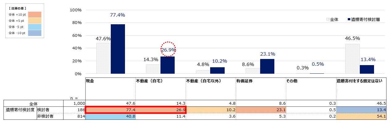 今回の調査結果において、遺贈寄付検討者のうち26.9%が相続財産として「不動産(自宅)」を希望しており、不動産の遺贈寄付ニーズが十分にあることが窺えます。