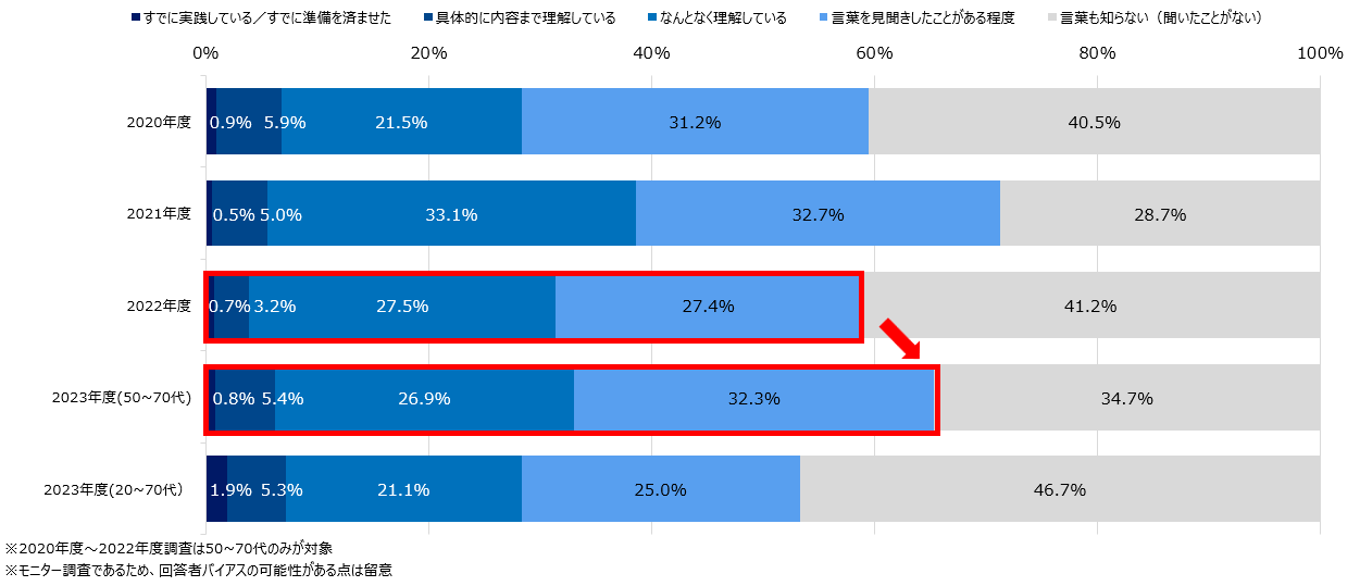ただし、年度により回答のバラつきが見られるため、依然として継続的な啓発・情報発信活動は必要と捉えています。
