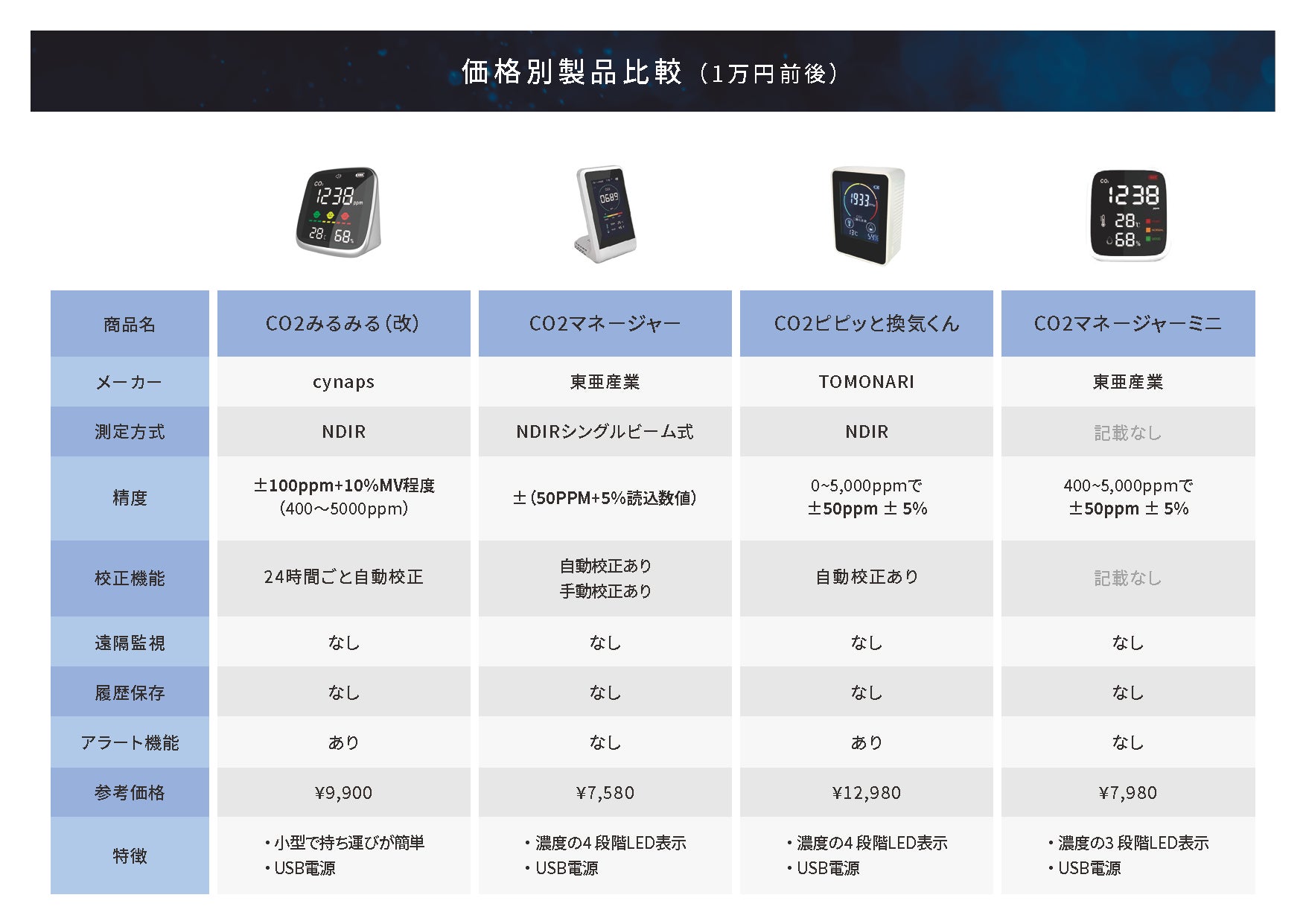 - 二酸化炭素濃度計の比較表を無料プレゼント