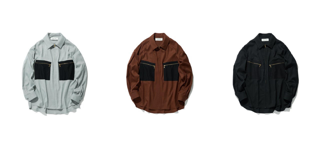 GOLD ZIP にバイカラーが目を引く大ぶりなポケットが特徴的な 1 着。フロントの仕様も ZIP にしライトアウターとしてコーディネートの主役にもインナ ー使いでポイントとしても着用出来るマルチでスタイリングが愉しめる 1 着。