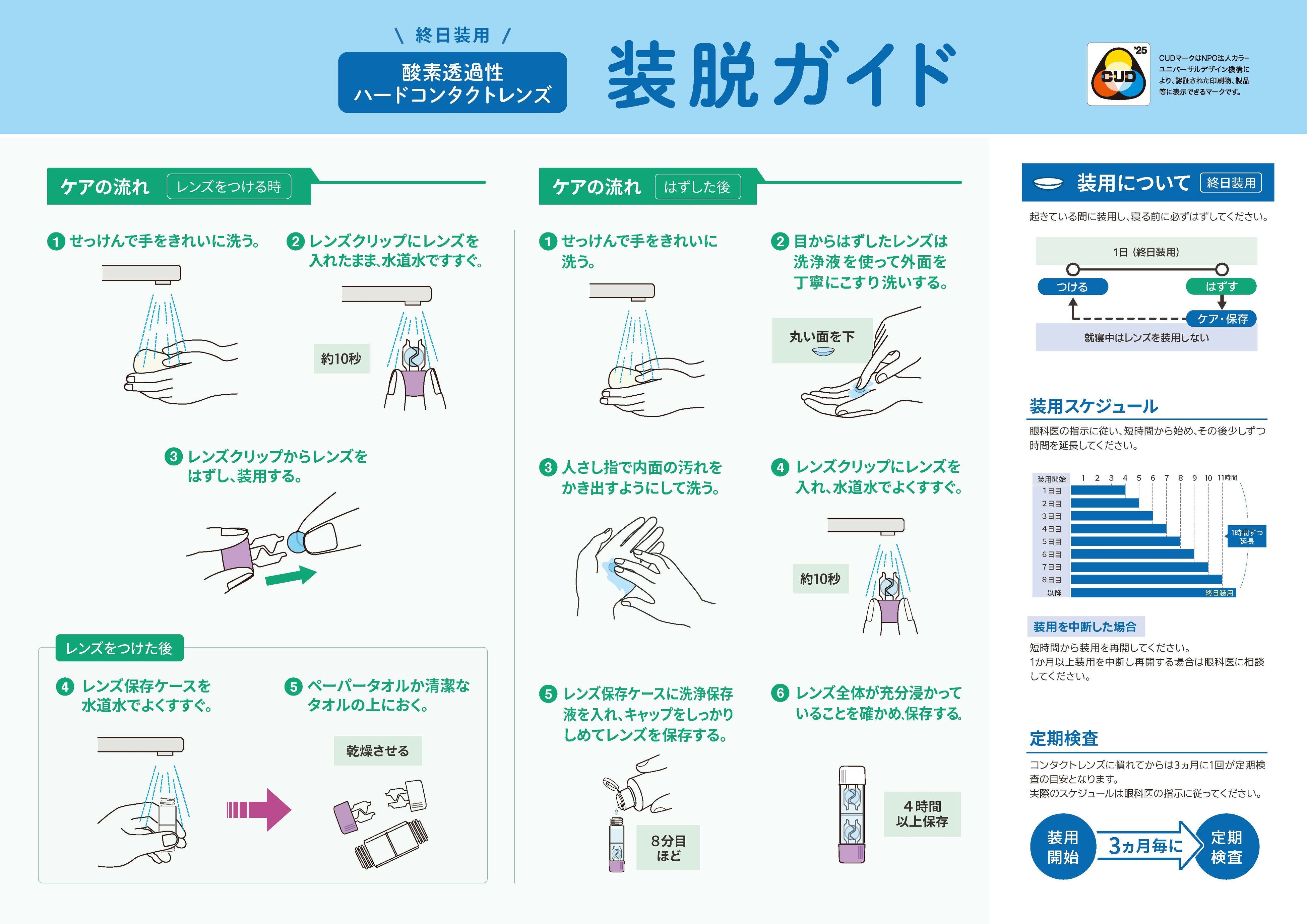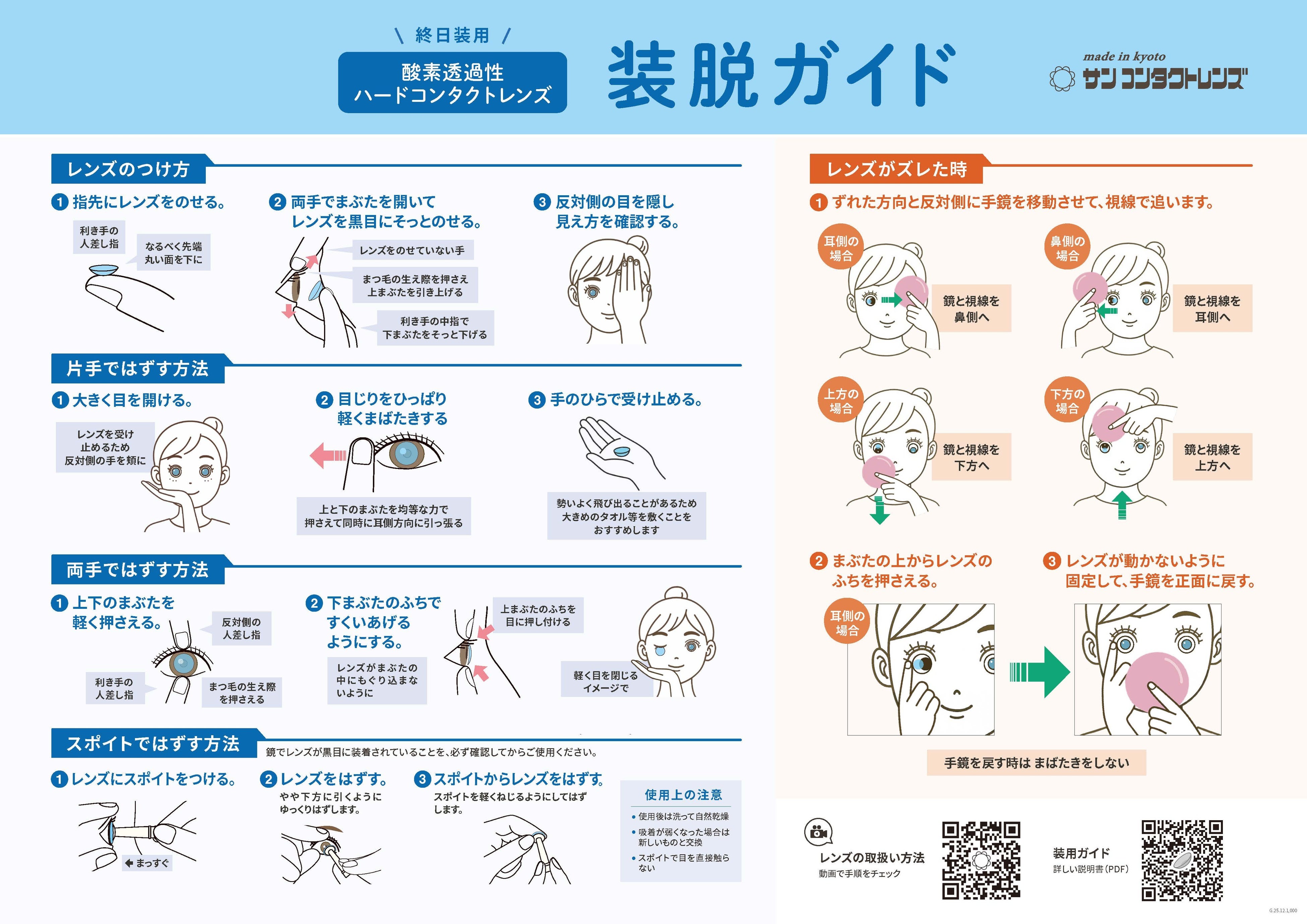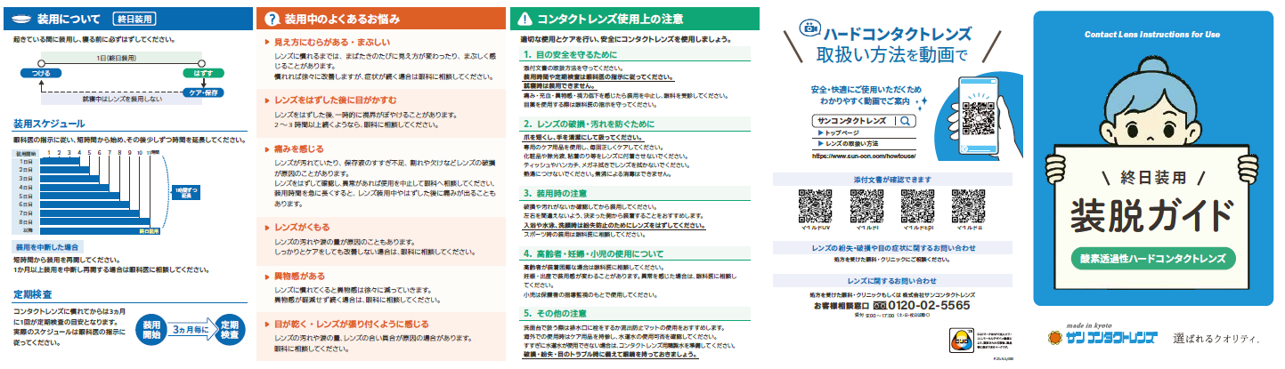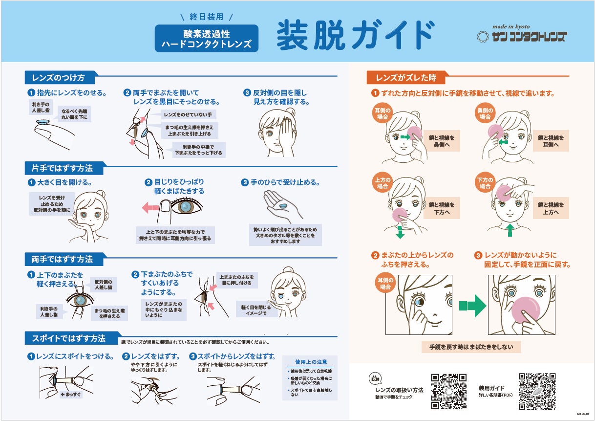 株式会社サンコンタクトレンズ(本社:京都市下京区、代表取締役社長:笹川 泰弘)は、装脱指導の在り方を変える2つの新ツール ――「装脱ガイド(A3サイズ)」および「取扱説明書(改訂版・A6サイズ)」を制作しました。