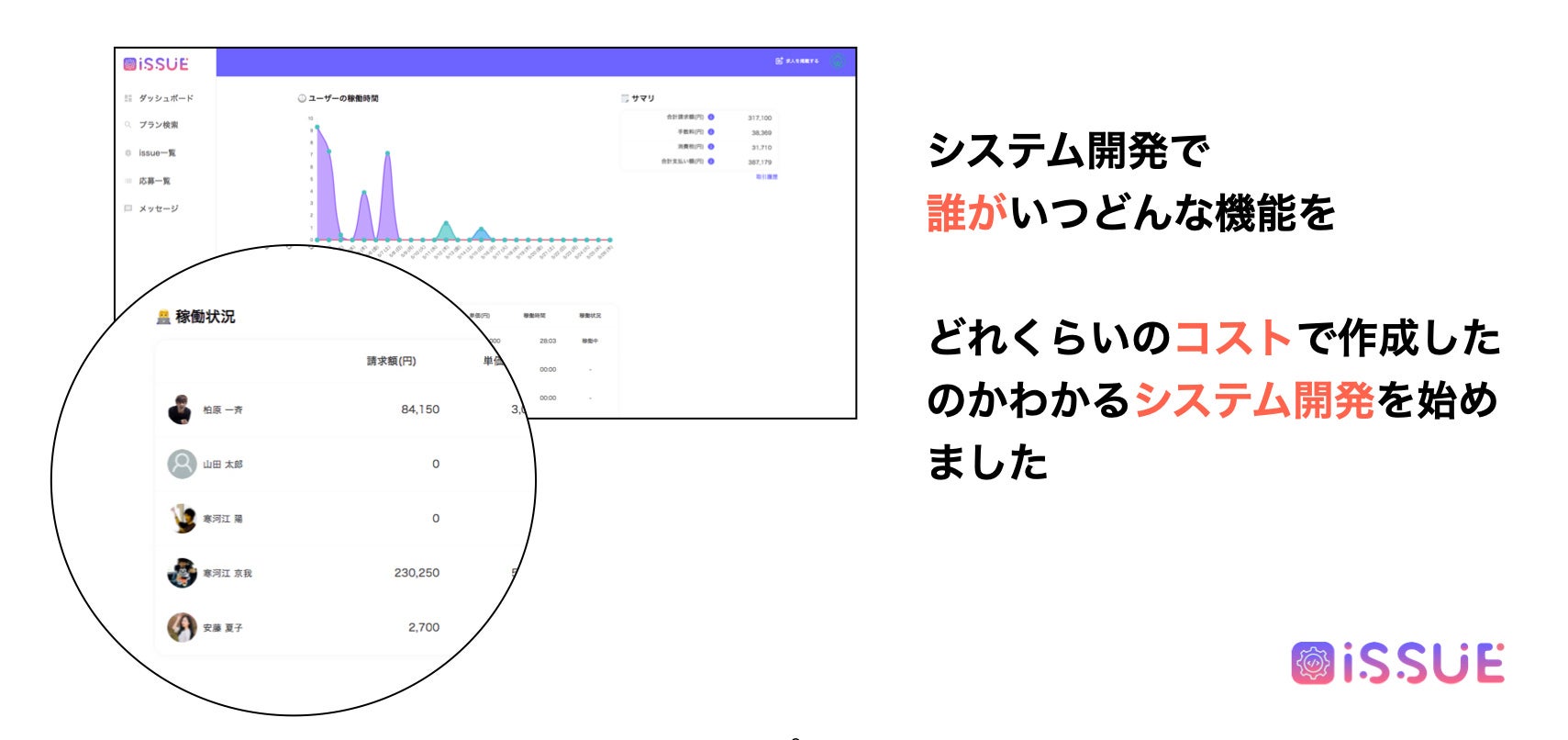 → ISSUEの知見を活かし、エンジニア獲得およびチームビルディングから要件定義、お見積りまでフルマネージドな開発を提供します。