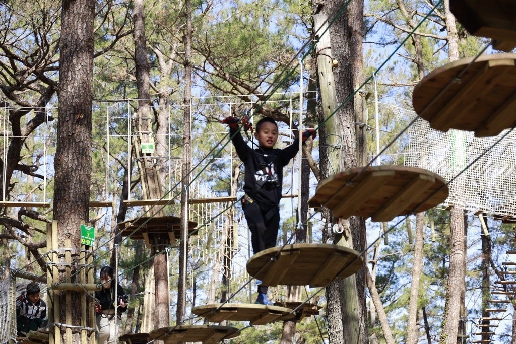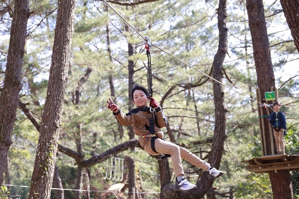 吹上浜は全国44か所目となり、鹿児島県では、曽於市大隅町にある「フォレストアドベンチャー・おおすみ」に次ぐ2番目の施設となります。このアクティビティでは、木々の上で安全器具を自分で操作しながら進むため、自らの安全を確保しつつ挑戦する楽しさがあります。大人は子供にかえり、子供は大人になる。