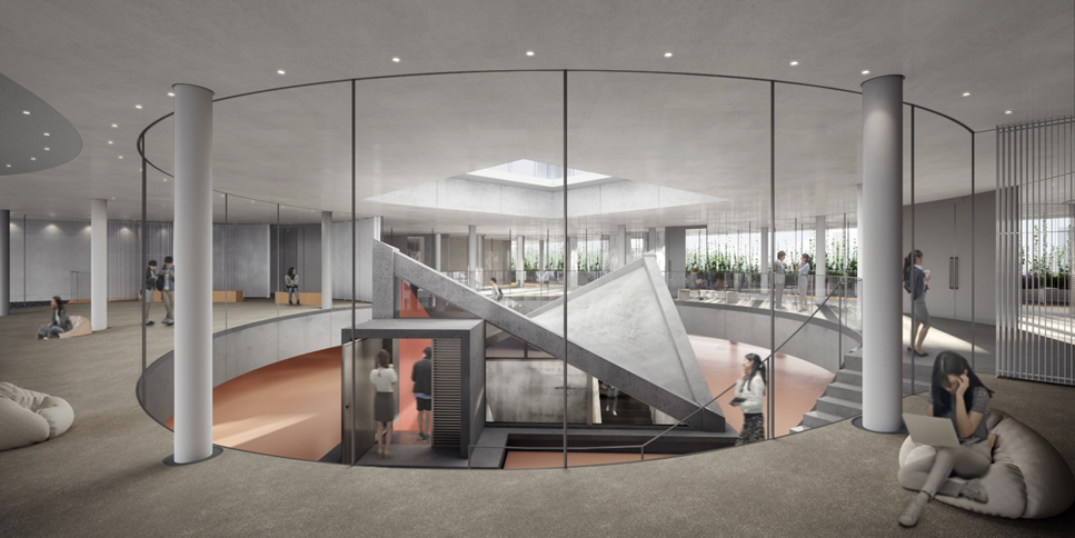 既存52号館上部5階に設けられるラーニングコモンズです。 学生(学部生を中心とした)院生・教職員が自然と交流する西早稲田キャンパスの新たな学生の居場所となります。