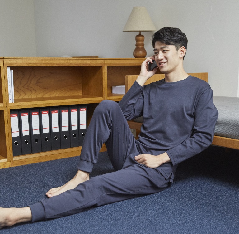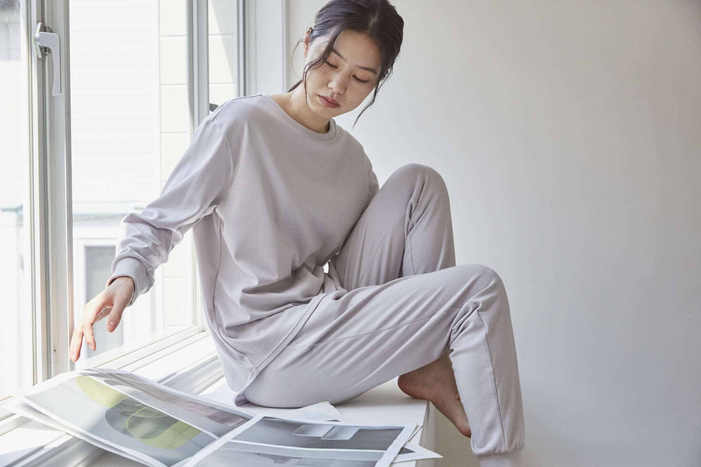軽量かつすっきりとしたデザインで、きゅっと絞った袖や裾があたたかさを閉じ込め、生地にほどよいハリがあることでルーズになり過ぎないため、きちんと見えする“おうちウェア”として、リカバリー面だけでなくあたたかさとスタイリッシュさもサポートします。