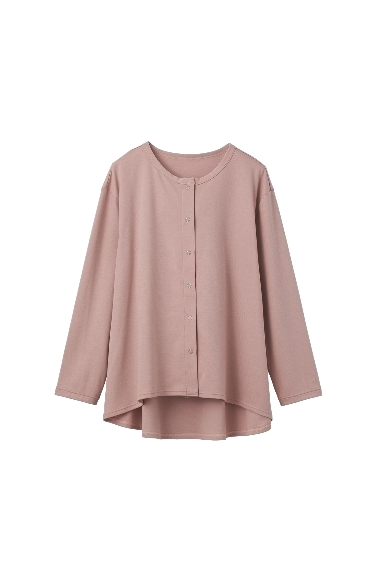 当社が独自開発した特殊繊維「PHT(Platinum Harmonized Technology)(※1)」の身に着けるだけで質の高い“休養”をサポートする効果をそのままに、滑らかなコットンブレンド生地の肌側に起毛をかけることで、桃の皮の表面のようなやわらかな肌触りを実現しました。肌に当たる面は“ふわっ”とやわらかく、肌の上を“サラっ”とやさしく滑るような肌触り。起毛のおかげで空気の層がとどまりやすくなり、身に着けた時によりあたたかさが感じられ、“ふわサラ”のぬくもりに包まれる「リカバリーウェア」です。