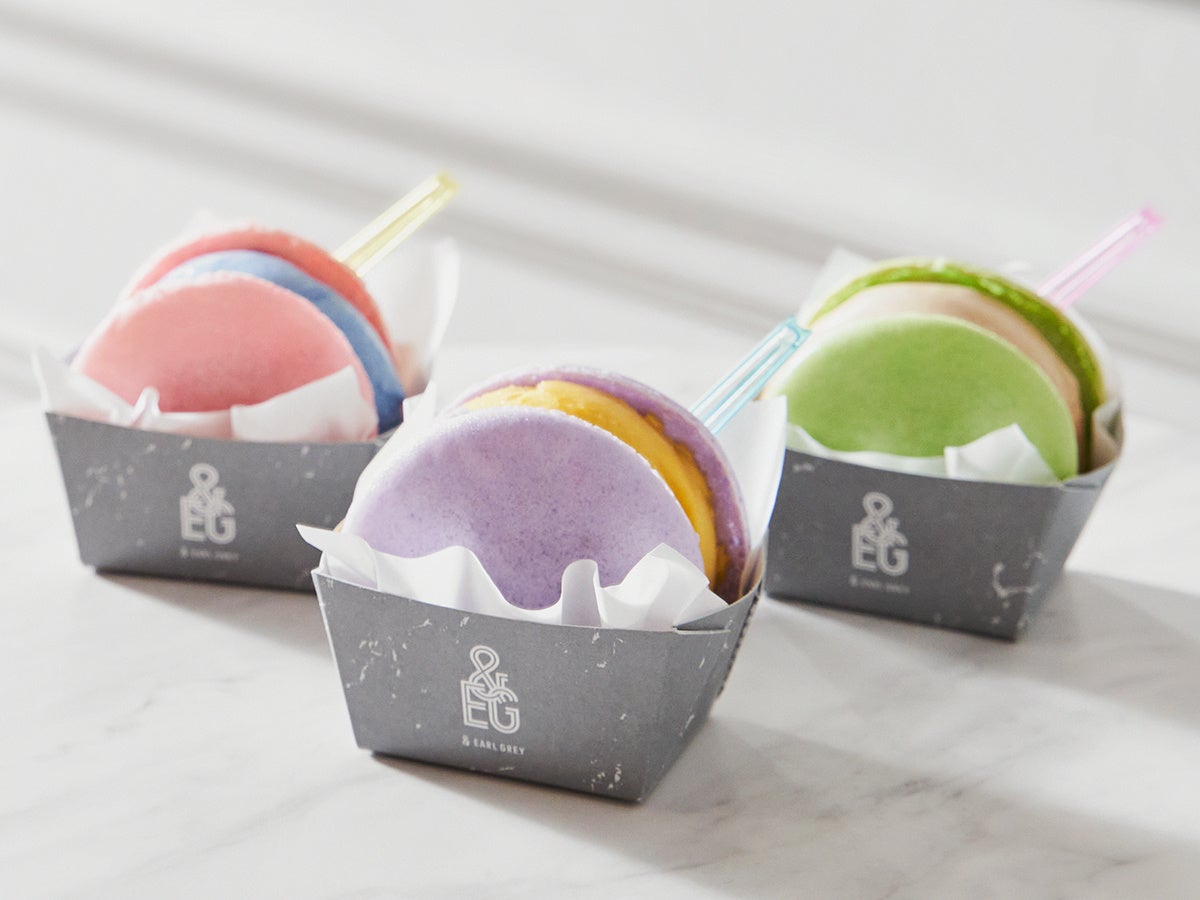 「あいぱく🄬」先行発売!天然ベルガモット香るアールグレイ専門店『&Earl Gray(アンドアールグレイ)』から新商品が登場!パティシエが一つ一つ手作りしたこだわりのマカロンに同店自慢のティージェラートをサンド!マカロンは全6種類。約6.5センチで食べごたえのある手のひらサイズ。世界各国から厳選した茶葉を濃縮抽出し、濃厚な味わいに仕上げたティージェラートと手作りマカロンの組合せた逸品。マカロンとジェラートはそれぞれ種類が選べるので、”自分だけのマカロンジェラート”をお楽しみください。