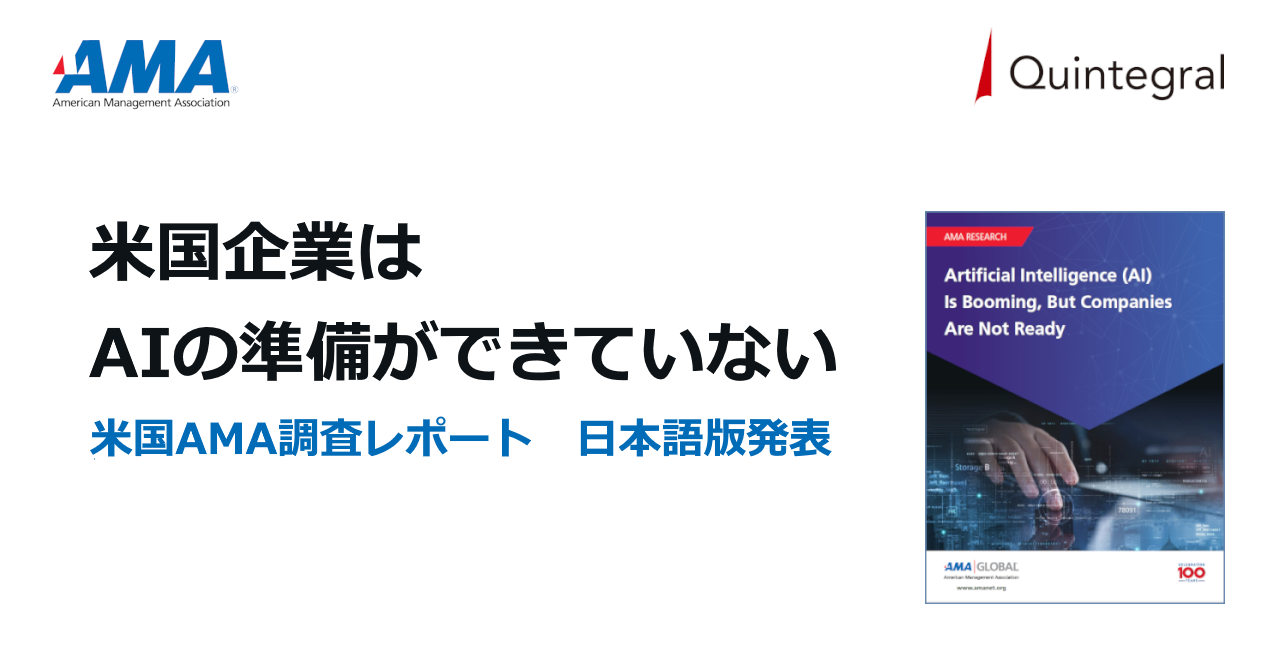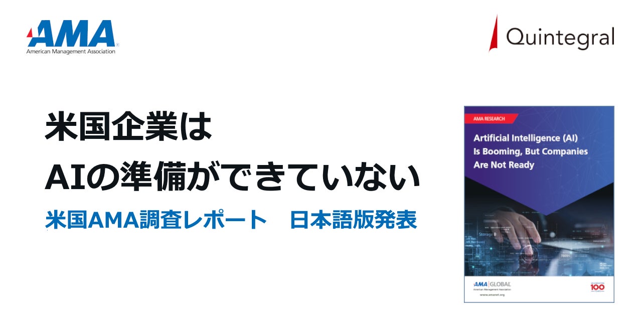日本および アジアで企業向けに各種研修、人材開発コンサルティング事業を行うクインテグラル株式会社 (以下、クインテグラル 東京都新宿区、代表取締役社長 大谷 有三) は、世界有数の人材コンサルティング組織である米国AMA (American Management Association) が発行した調査レポート「Artificial Intelligence (AI) Is Booming, But Companies Are Not Ready」の日本語抄訳版を2024年1月26日に発表しました。