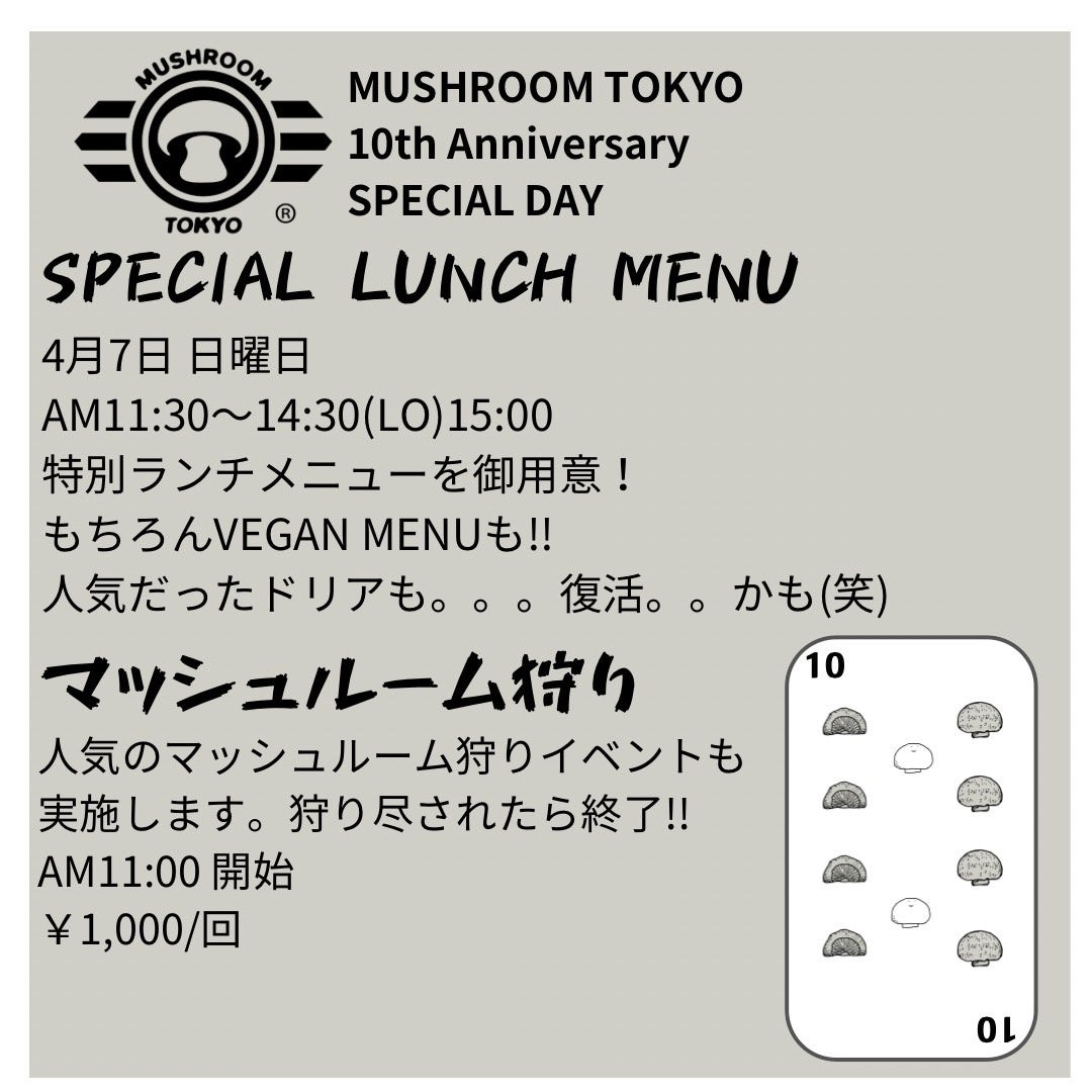 なお、10周年記念の感謝を込めまして、MUSHROOM TOKYOでは、4月7日(日)にイベントを開催します!